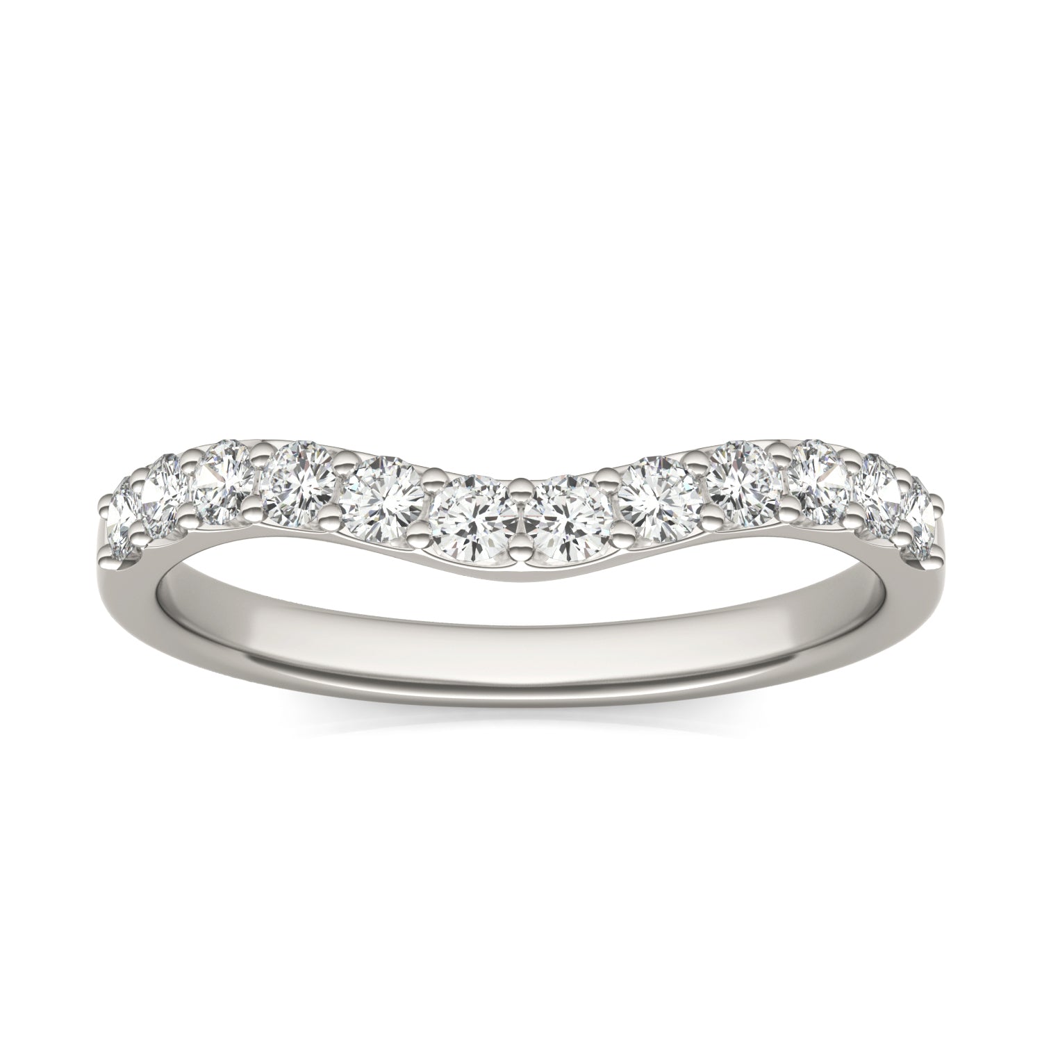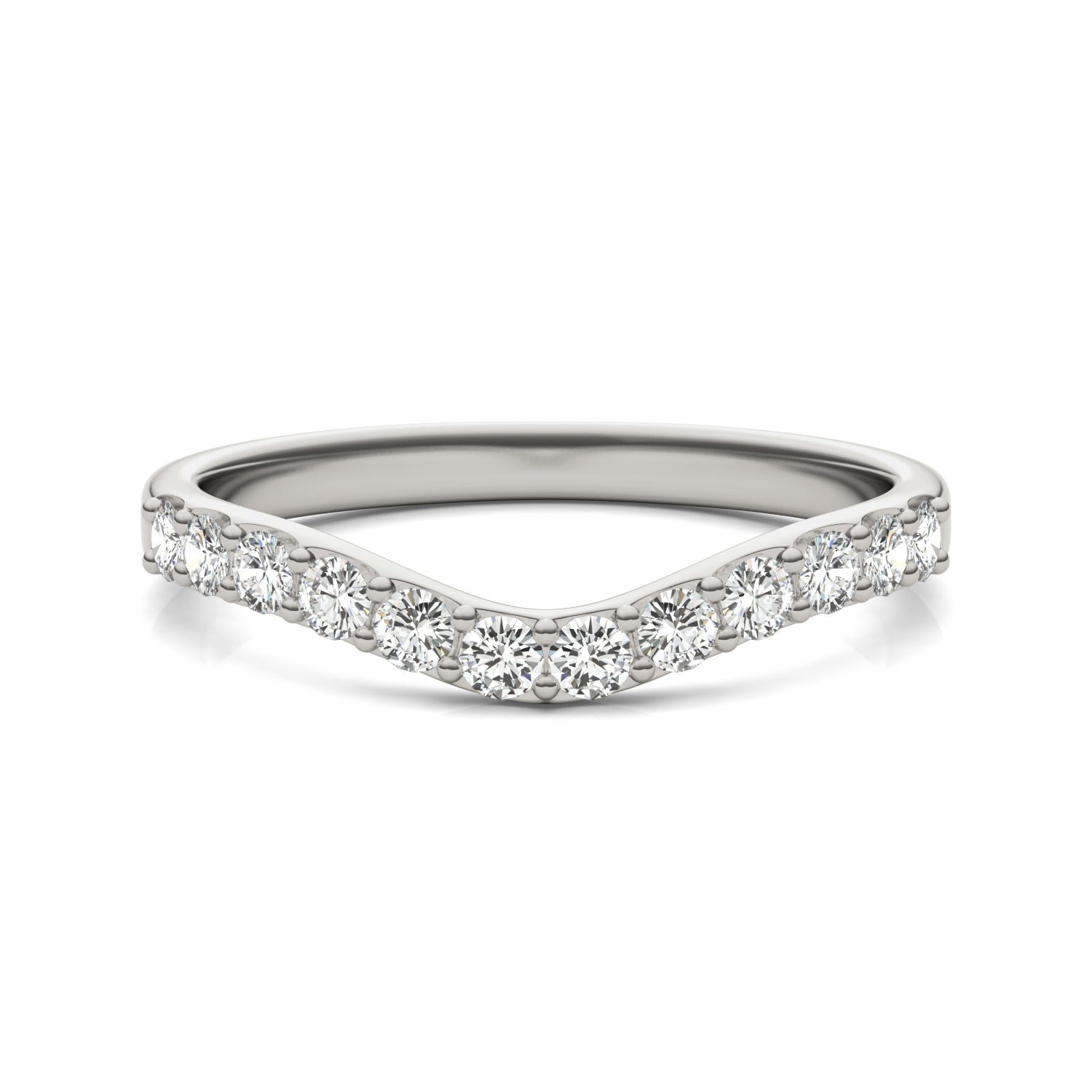 0.36 CTW DEW Round Forever One Moissanite Signature Curved Wedding Ring 14K White Gold