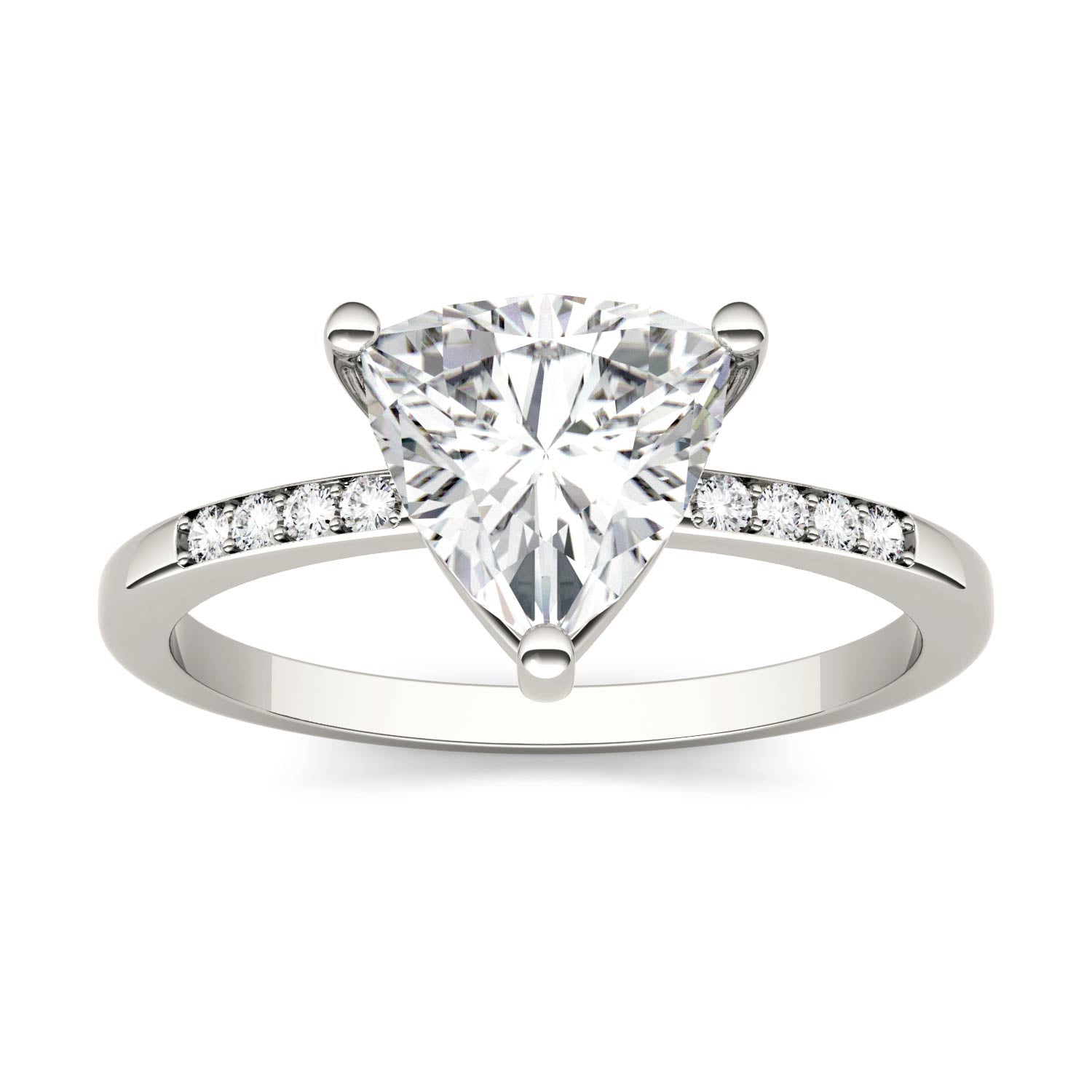 1.61 CTW DEW Trillion Forever One Moissanite Solitaire with Side Accents Ring in 14K White Gold, SIZE 7.5