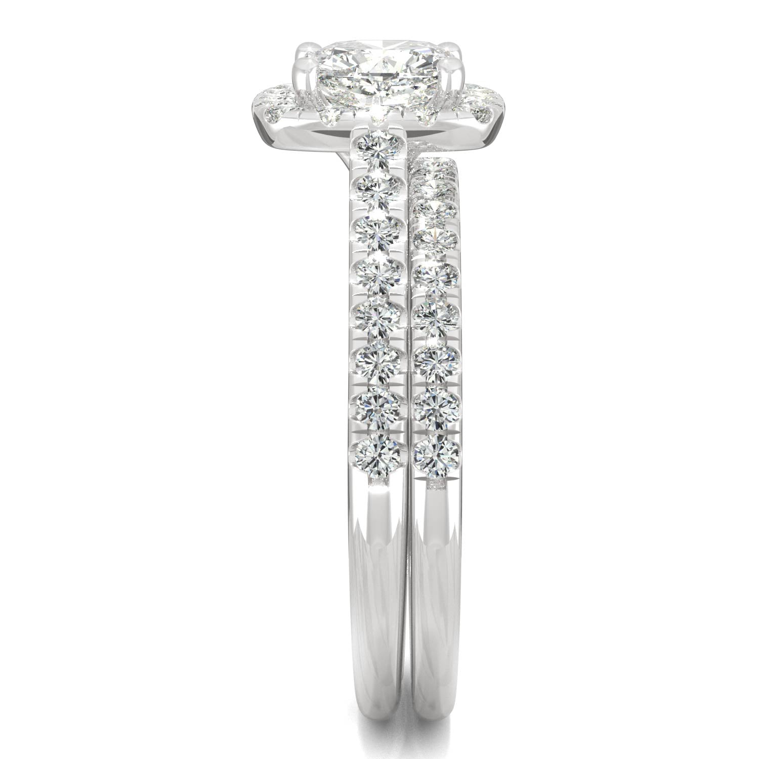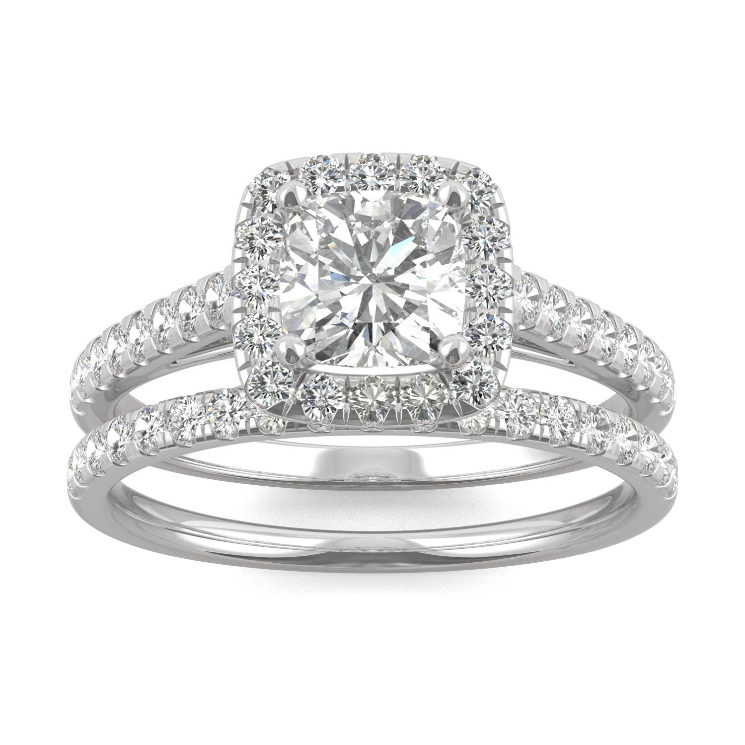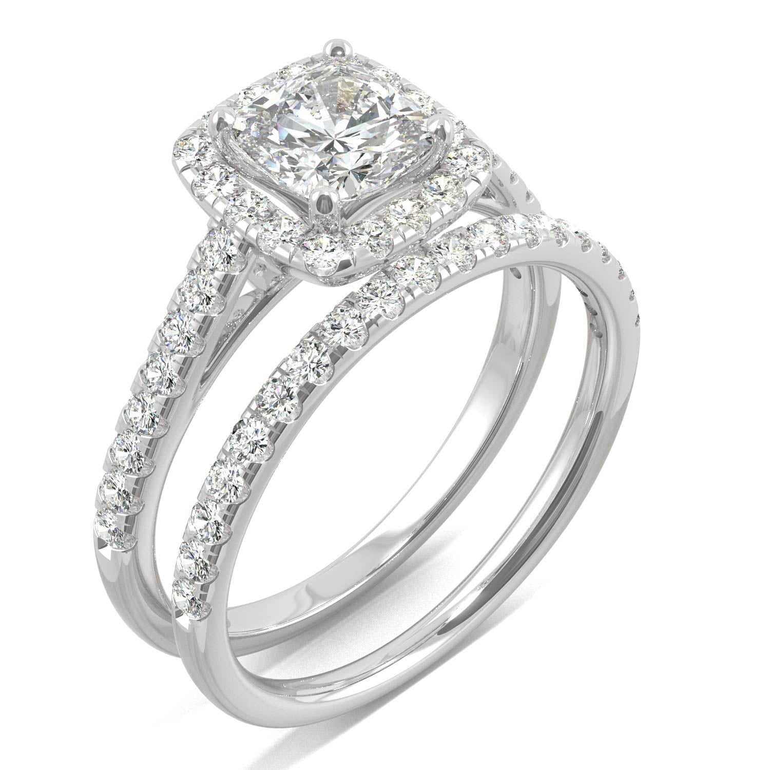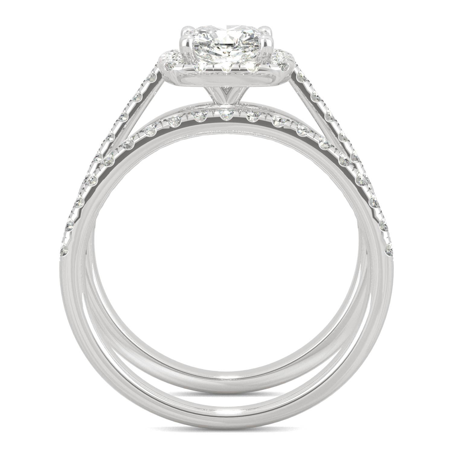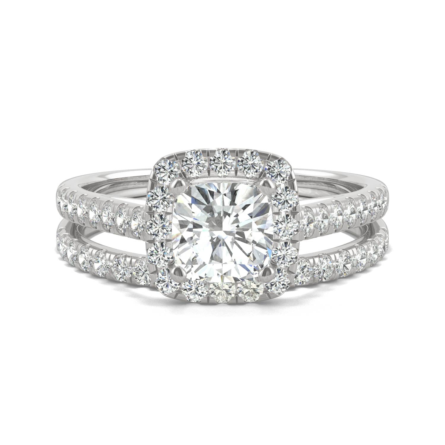 1.87 CTW DEW Cushion Forever One Moissanite Halo Bridal Set Ring in 14K White Gold