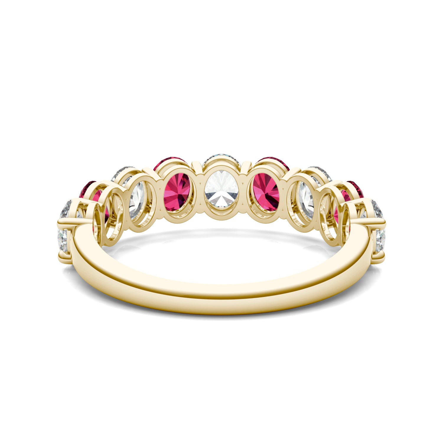 1 CTW Oval Caydia Lab Grown Diamond Couture Classic Anniversary Ring 14K Yellow Gold featuring Created Ruby