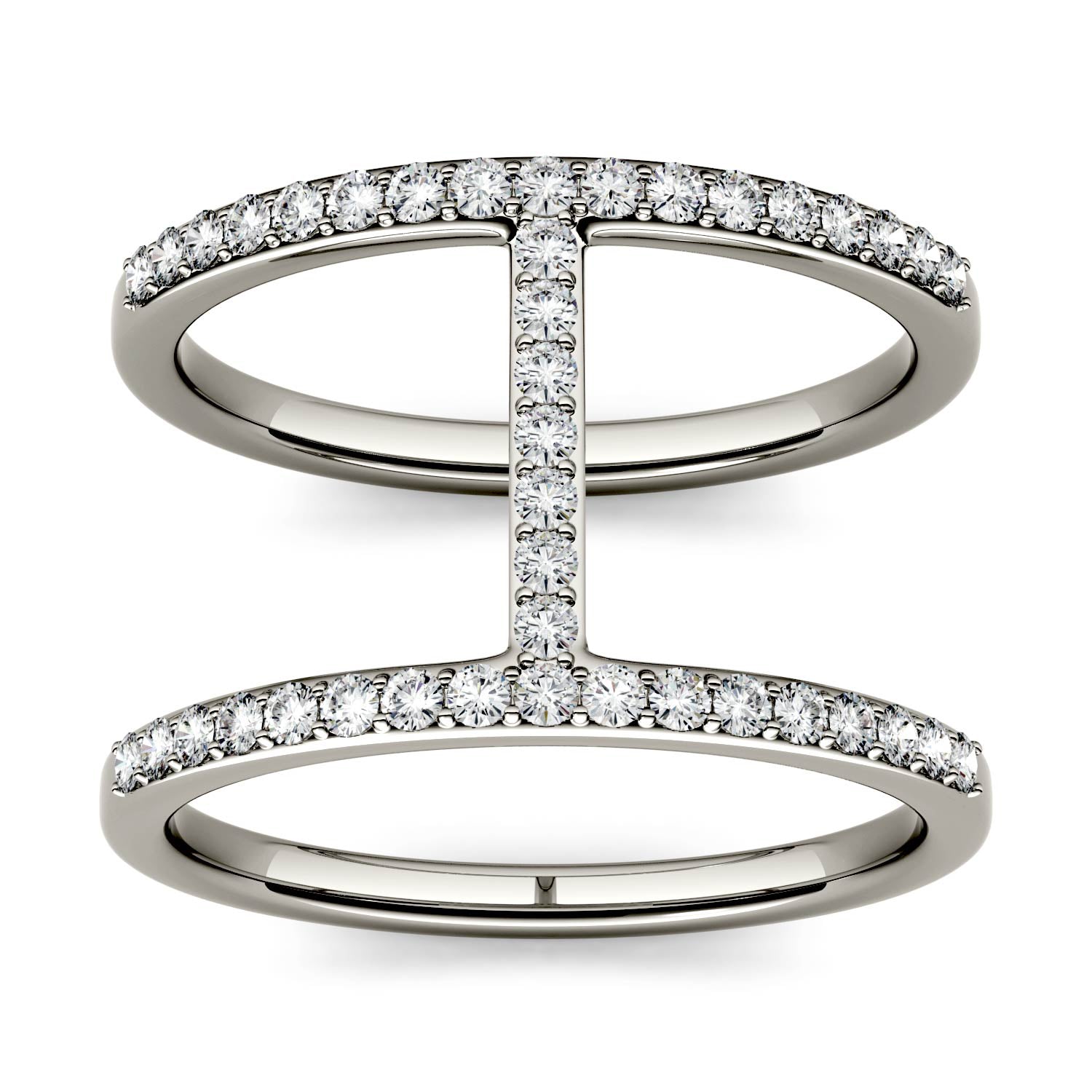 0.41 CTW DEW Round Forever One Moissanite Double Band Geometric Fashion Ring in 14K White Gold