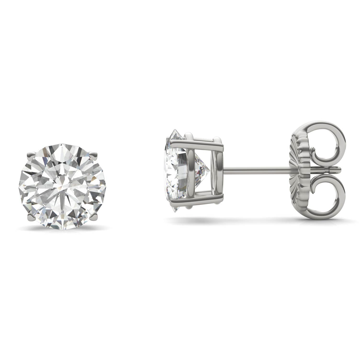 3.80 CTW DEW Round Forever One Moissanite Four Prong Stud Earrings in 14K White Gold