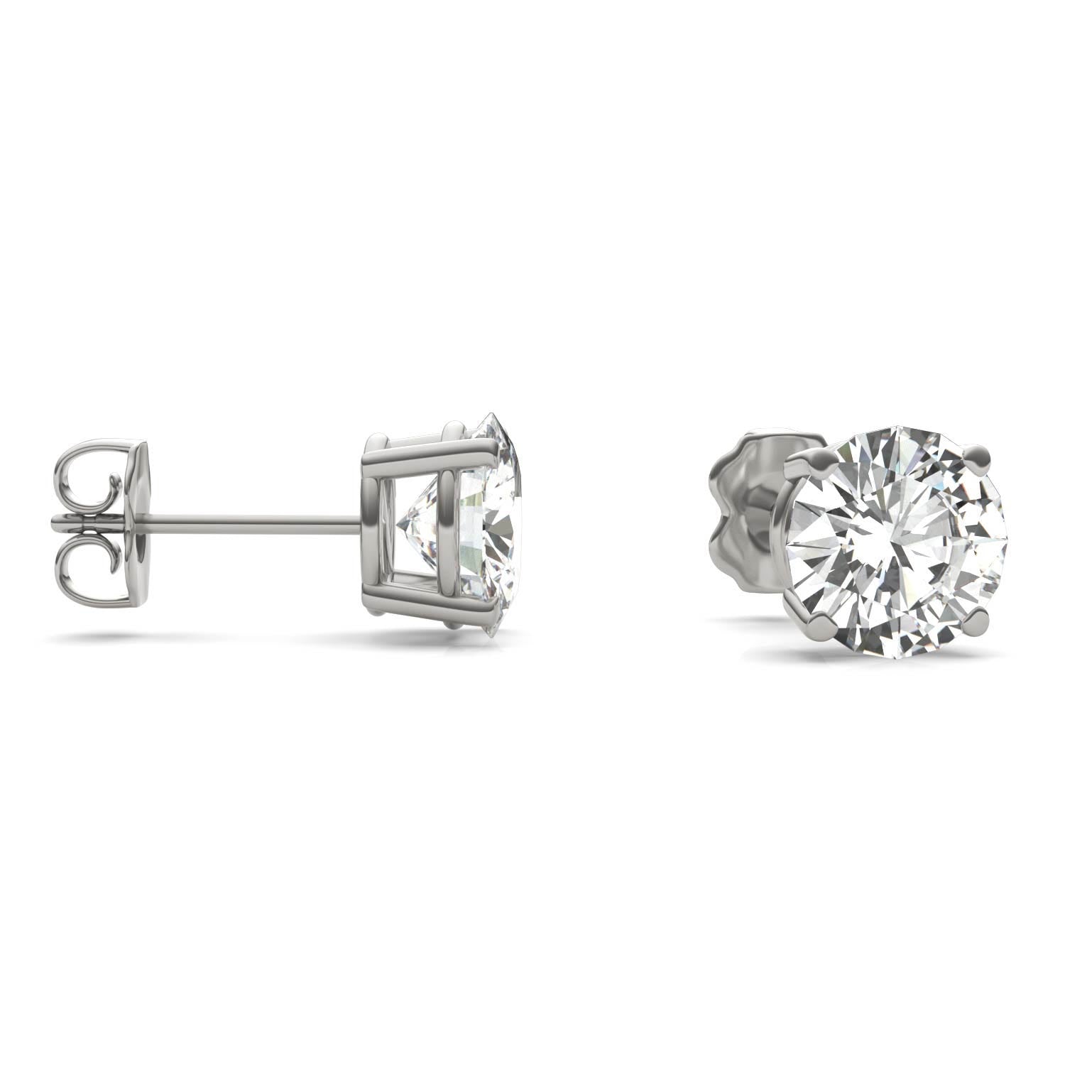 3.00 CTW DEW Round Forever One Moissanite Four Prong Stud Earrings in 14K White Gold