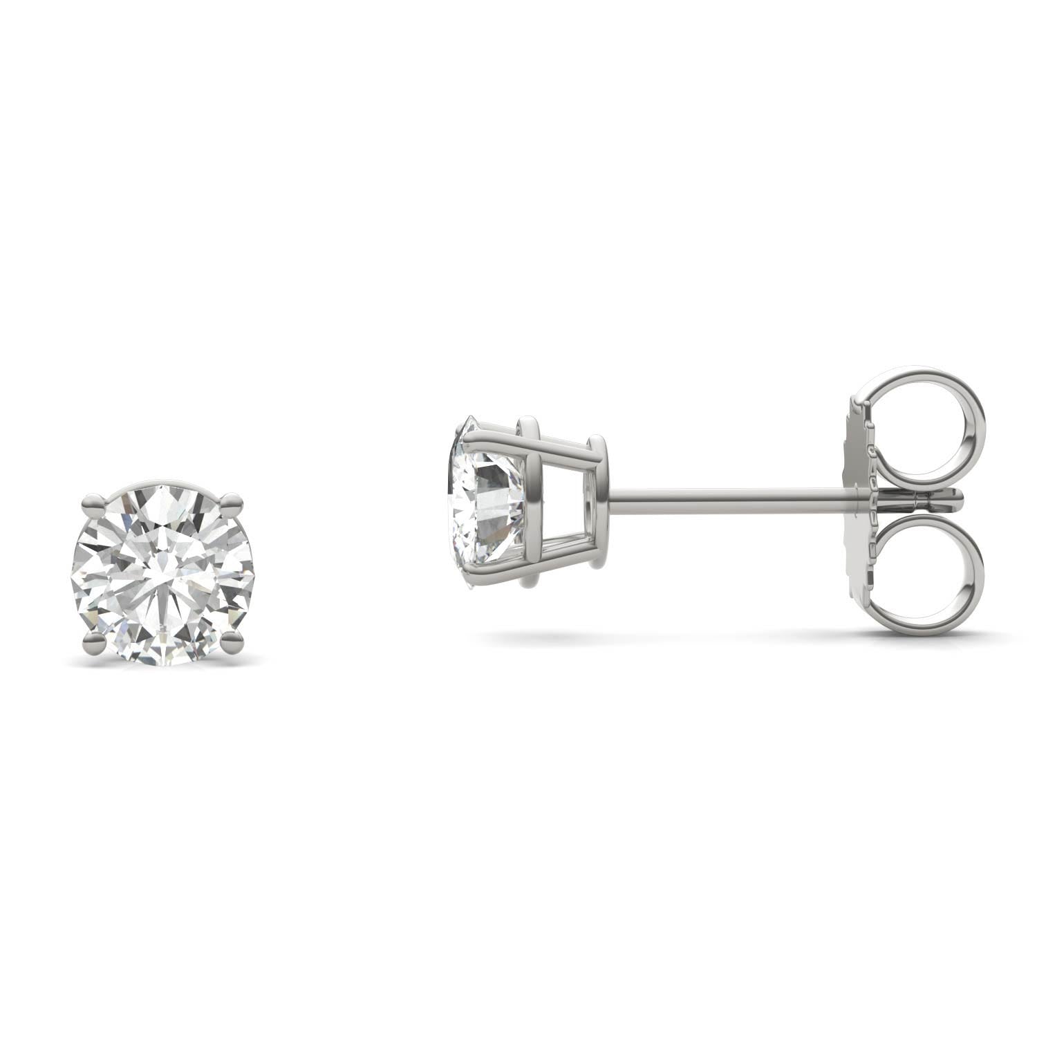 1.20 CTW DEW Round Forever One Moissanite Four Prong Stud Earrings in 14K White Gold