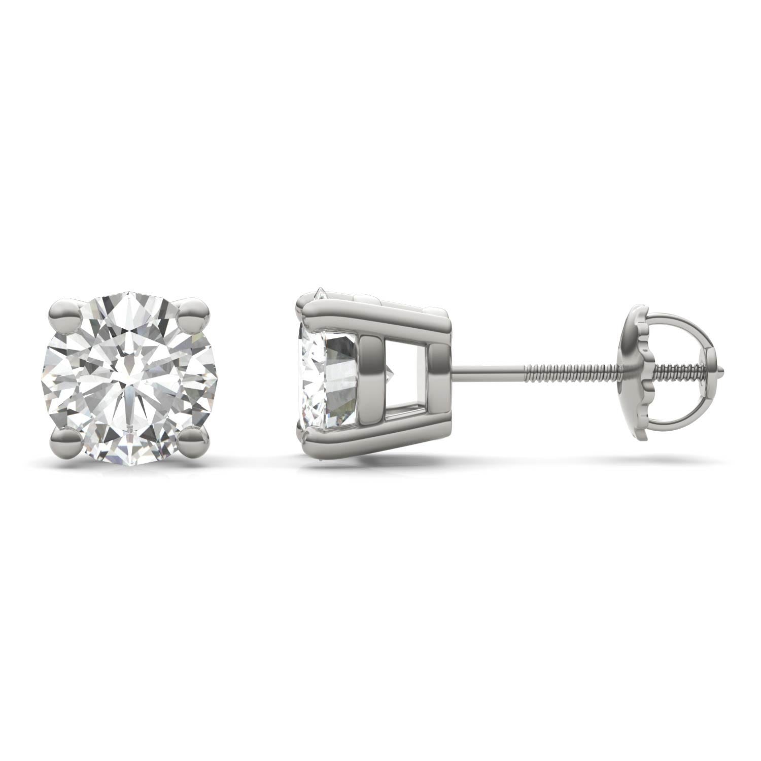 3.00 CTW DEW Round Forever One Moissanite Four Prong Screw-Back Earrings in 14K White Gold