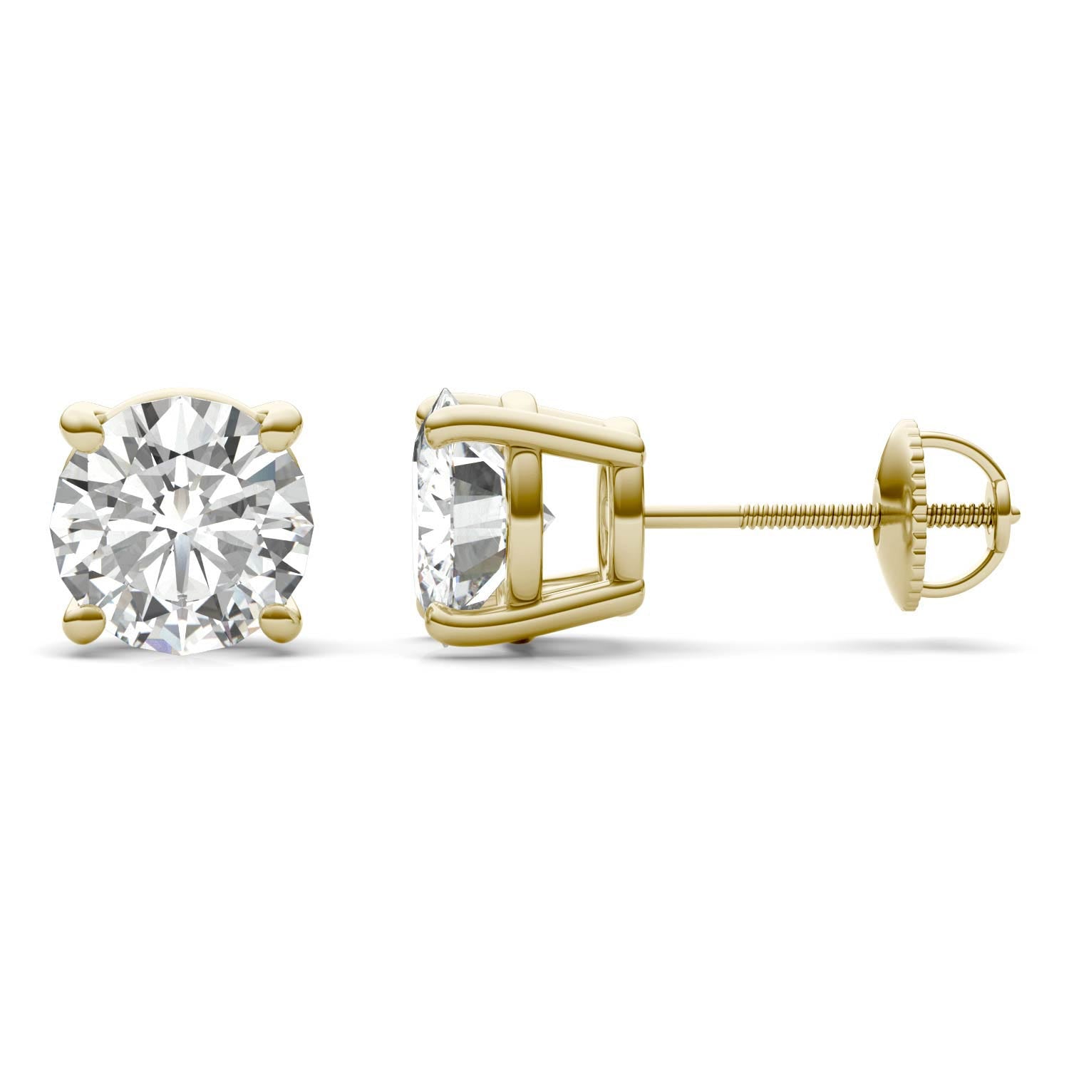 3.80 CTW DEW Round Forever One Moissanite Four Prong Screw-Back Earrings in 14K Yellow Gold