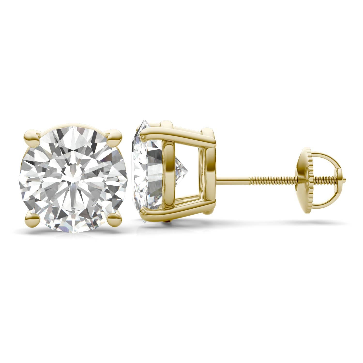 5.40 CTW DEW Round Forever One Moissanite Four Prong Screw-Back Earrings in 14K Yellow Gold