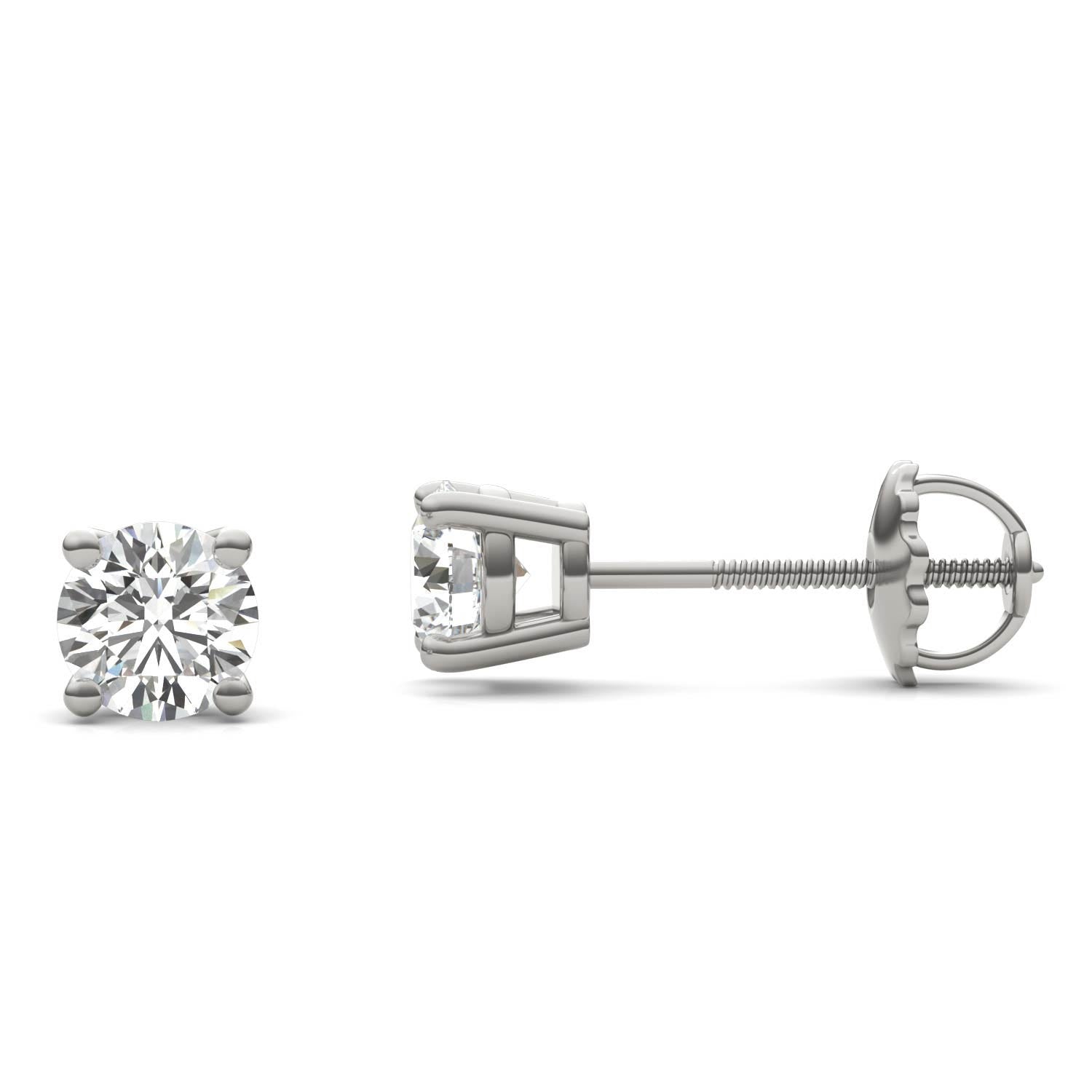 1 CTW Round Caydia Lab Grown Diamond Four Prong Screw-Back Stud Earrings 18K White Gold