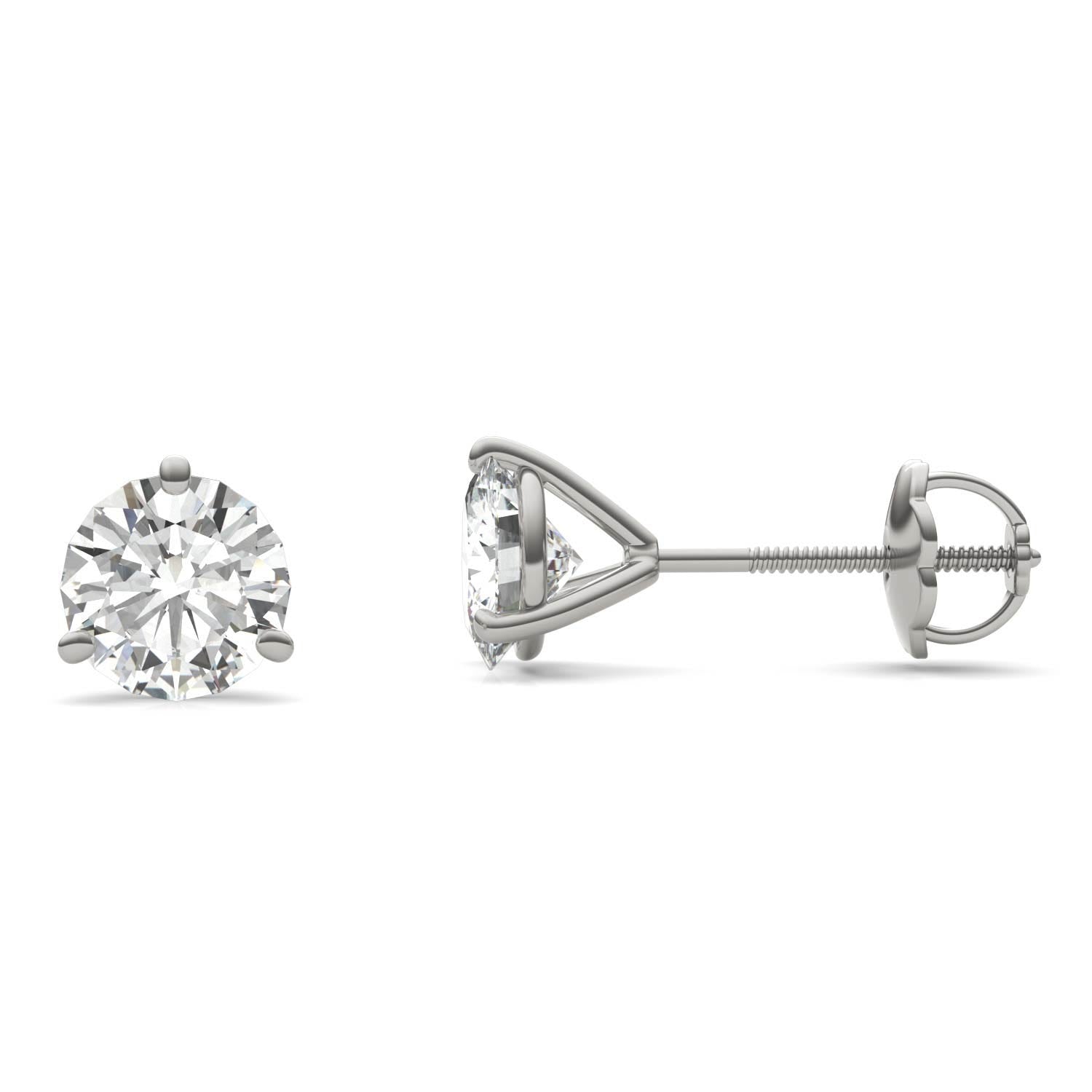 2.00 CTW DEW Round Forever One Moissanite Three Prong Martini Screw-Back Earrings in 14K White Gold