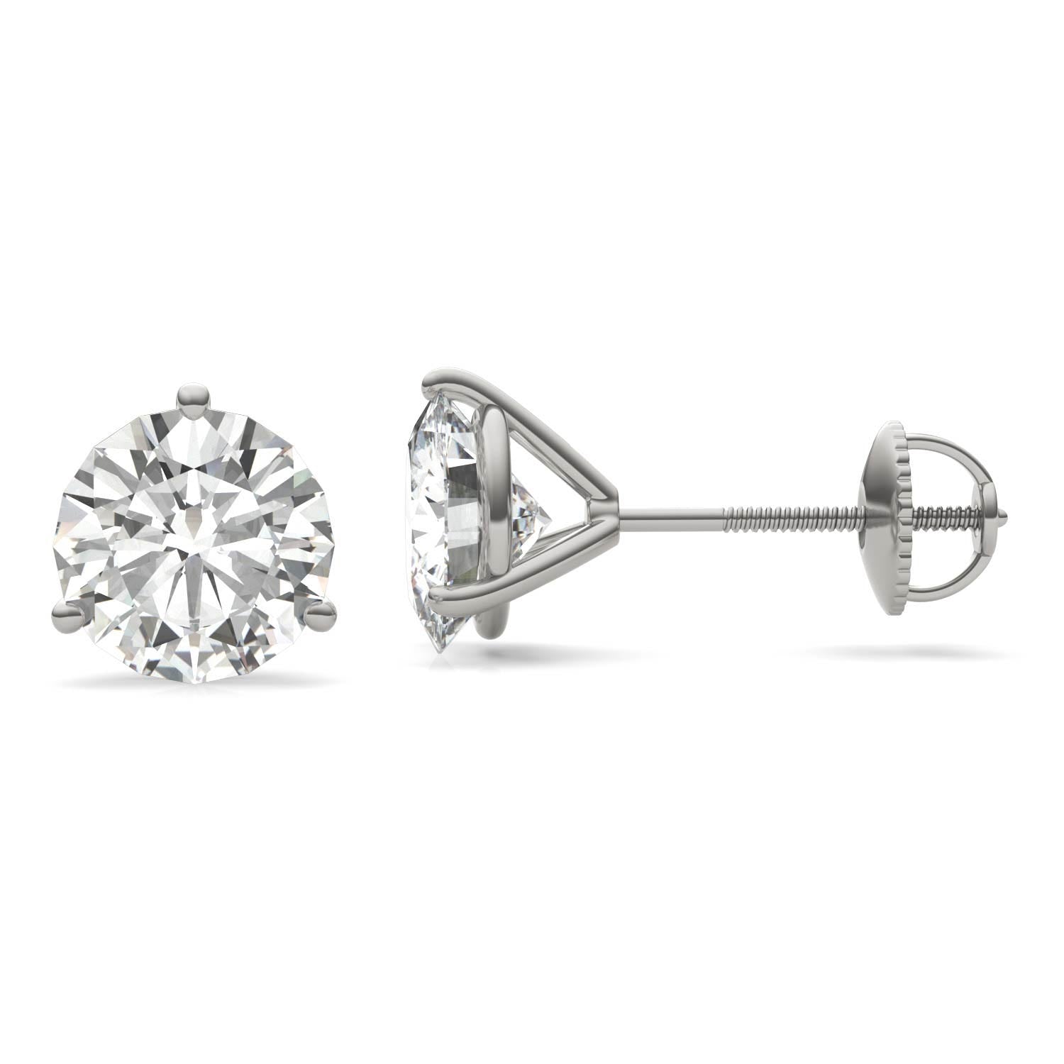 3.80 CTW DEW Round Forever One Moissanite Three Prong Martini Screw-Back Earrings in 14K White Gold