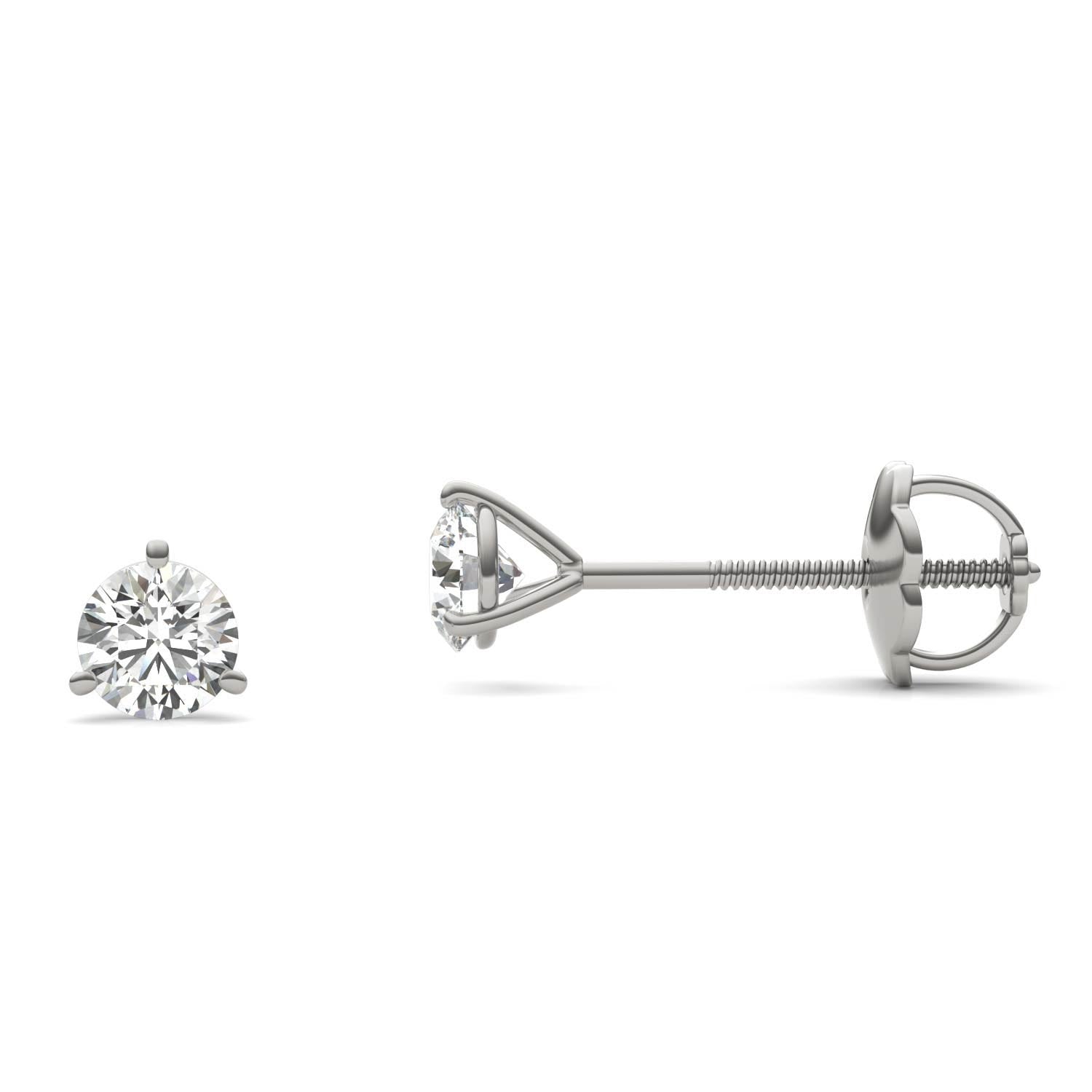 1/2 CTW Round Caydia Lab Grown Diamond Three Prong Screw-Back Martini Stud Earrings 18K White Gold