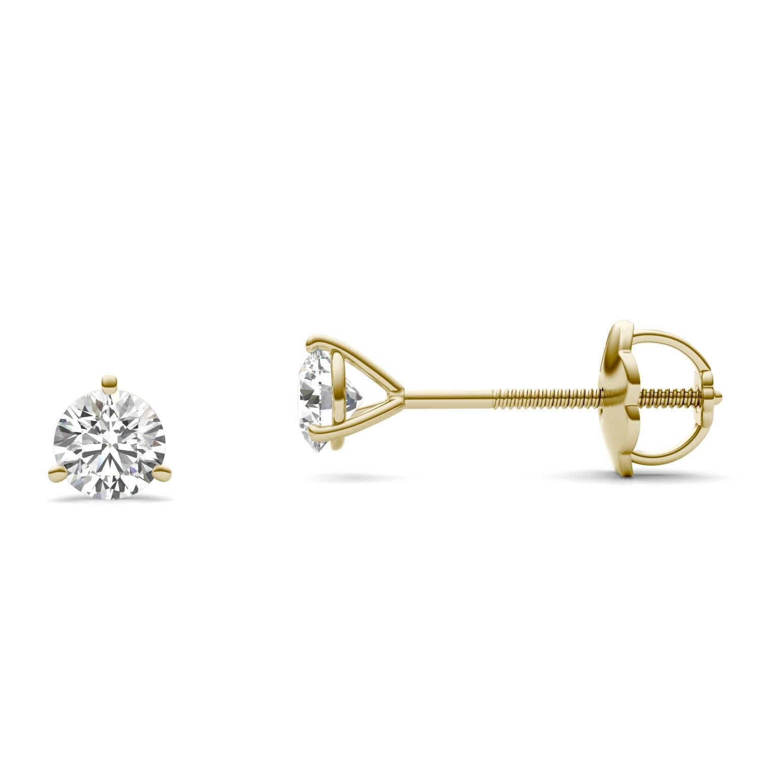1/2 CTW Round Caydia Lab Grown Diamond Three Prong Screw-Back Martini Stud Earrings 18K Yellow Gold
