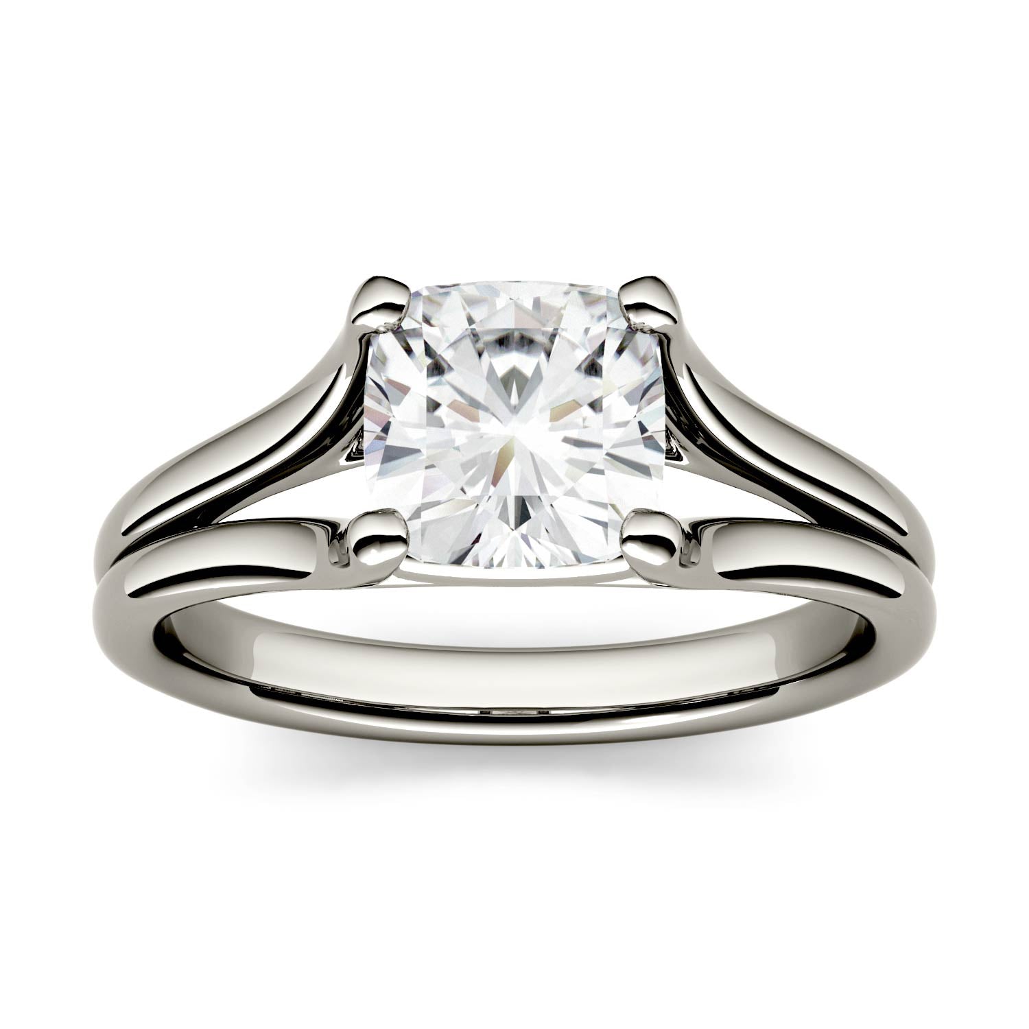 1.10 CTW DEW Cushion Forever One Moissanite Split Shank Solitaire Engagement Ring in 14K White Gold