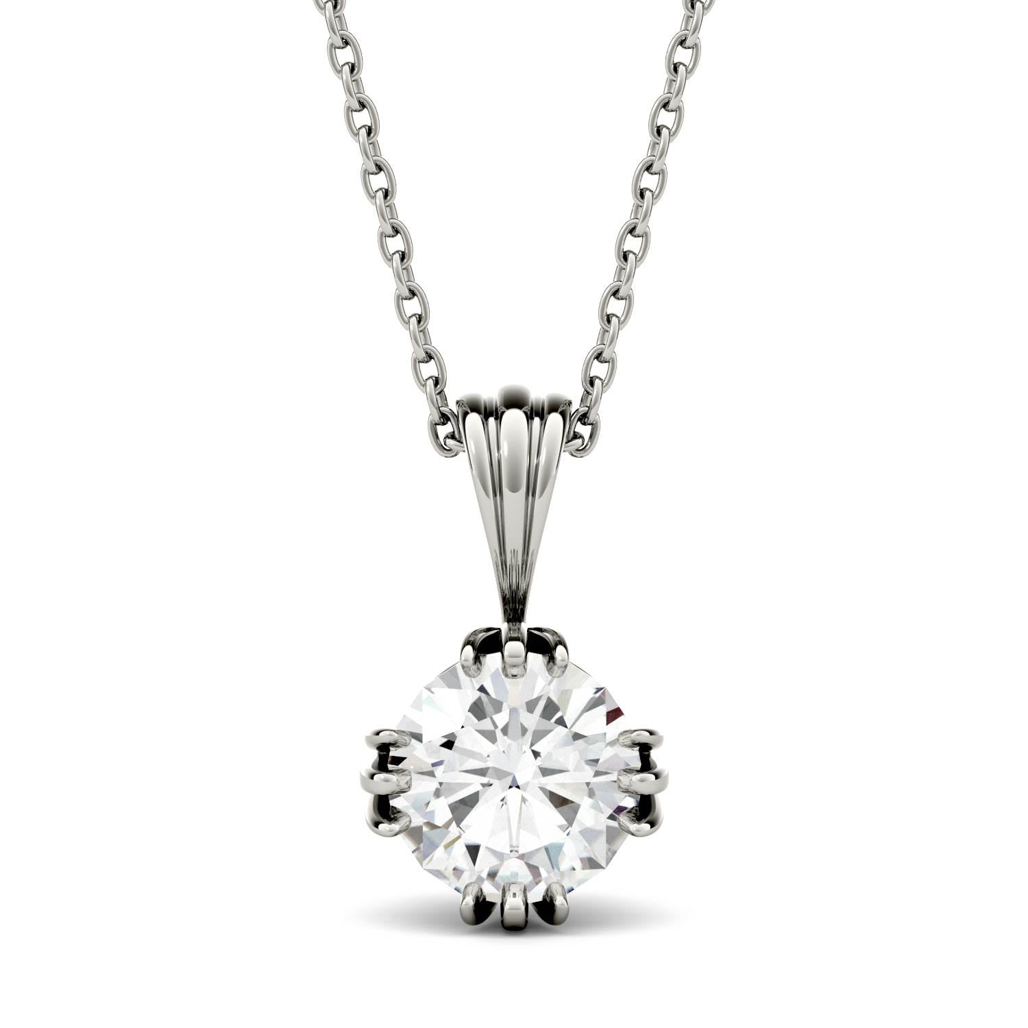 1.00 CTW DEW Round Forever One Moissanite Tripe Prong Solitaire Pendant in 14K White Gold