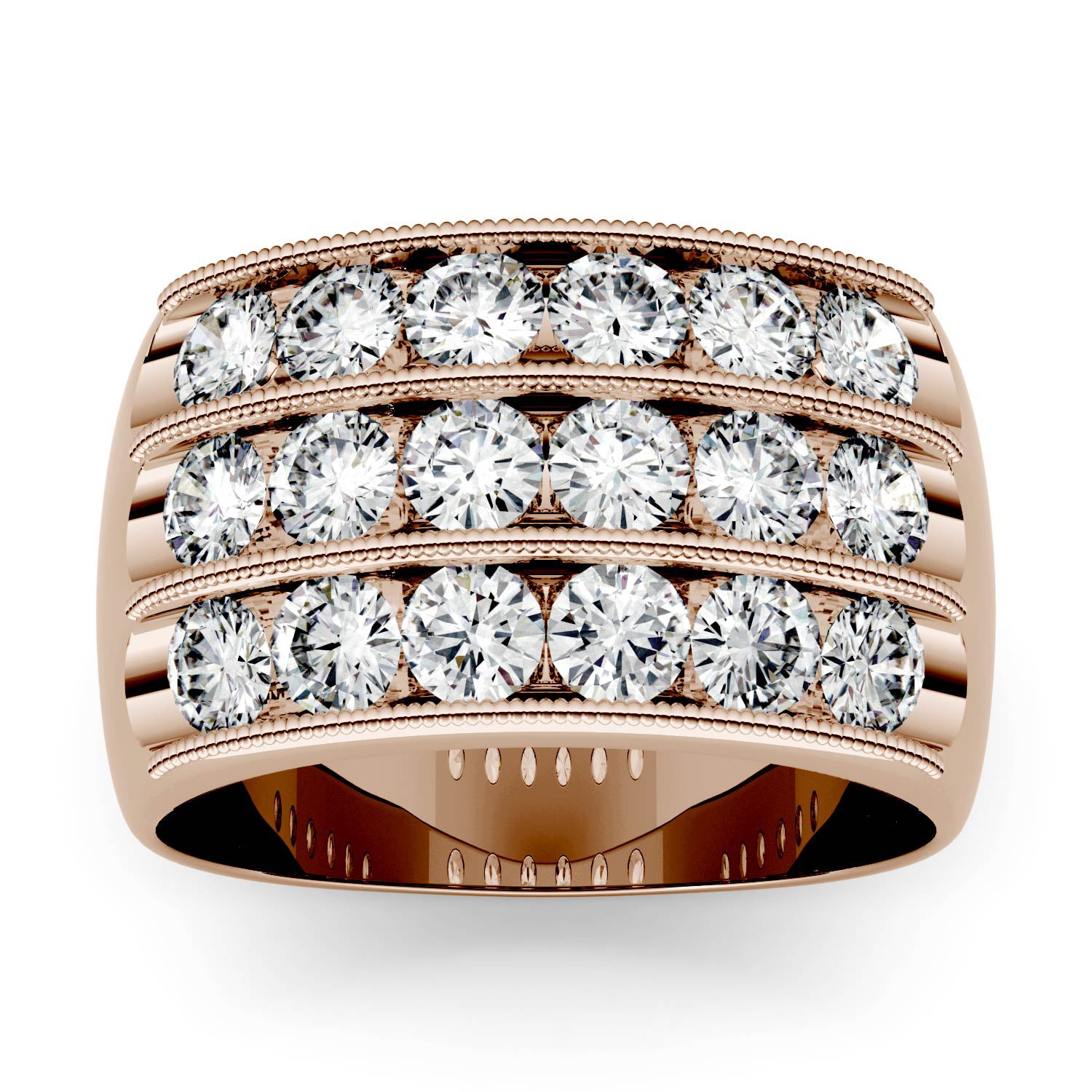 2.88 CTW DEW Round Forever One Moissanite Triple Row Anniversary Band in 14K Rose Gold
