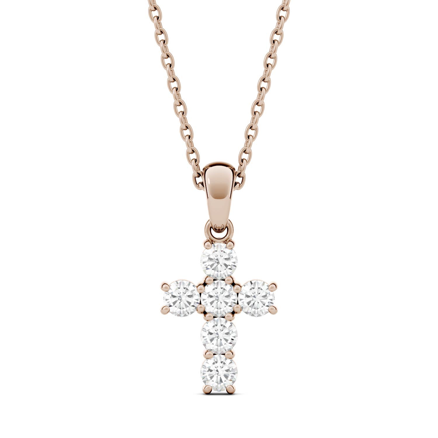0.36 CTW DEW Round Forever One Moissanite Cross Pendant in 14K Rose Gold