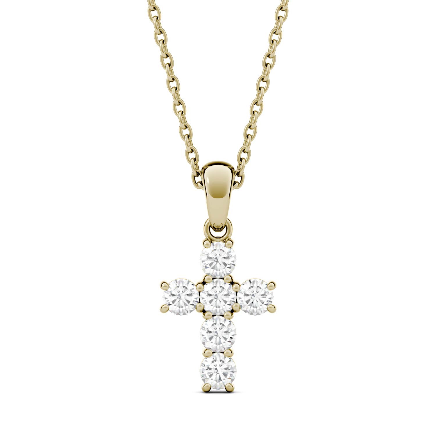 0.36 CTW DEW Round Forever One Moissanite Cross Pendant in 14K Yellow Gold