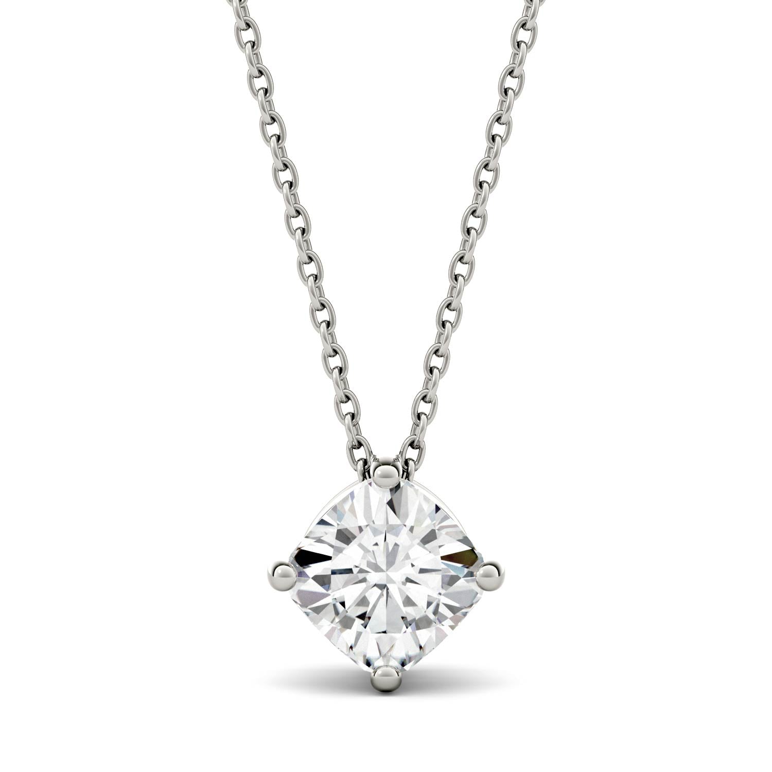 2.00 CTW DEW Cushion Forever One Moissanite Solitaire Pendant in 14K White Gold