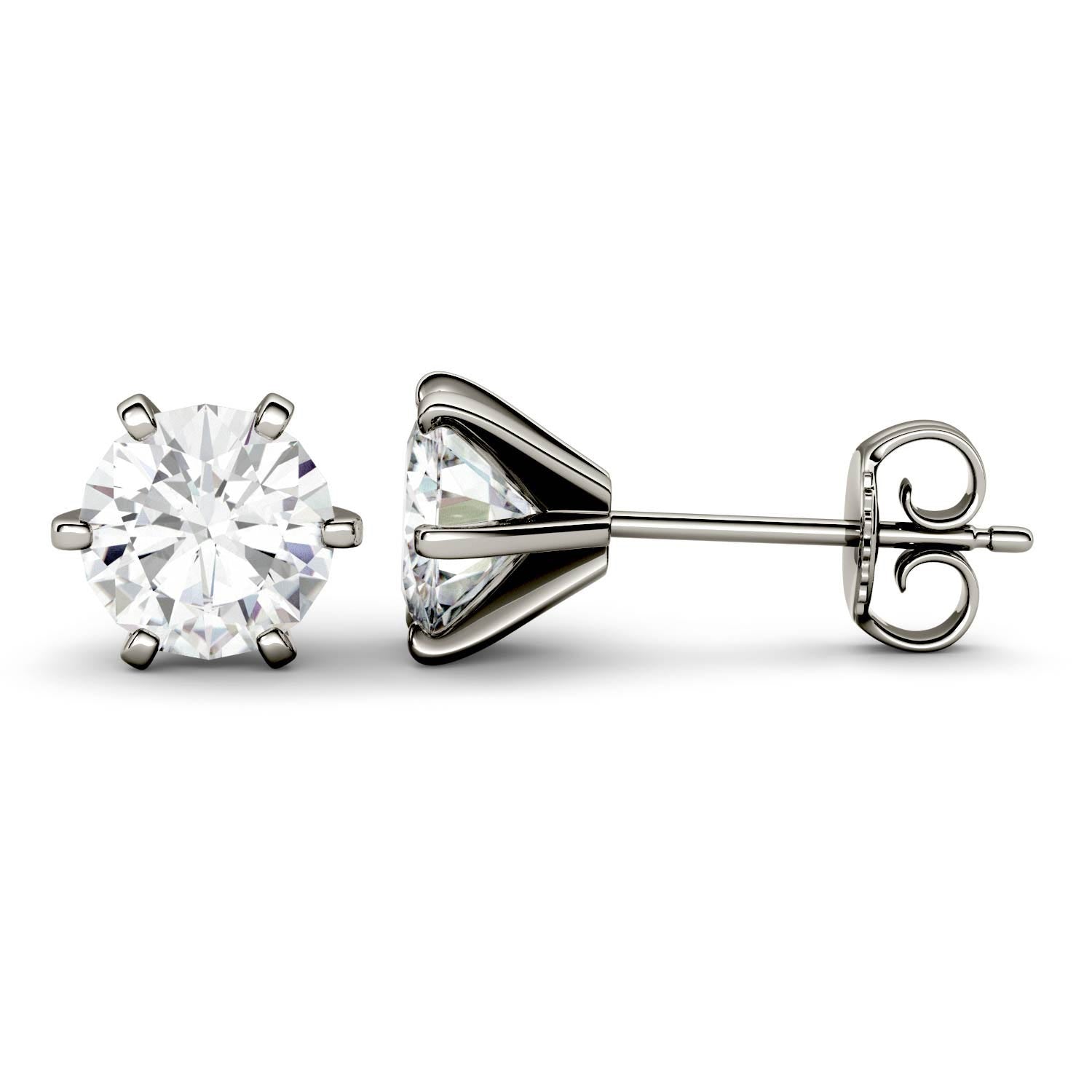 1.00 CTW DEW Round Forever One Moissanite Six Prong Stud Earrings in 14K White Gold