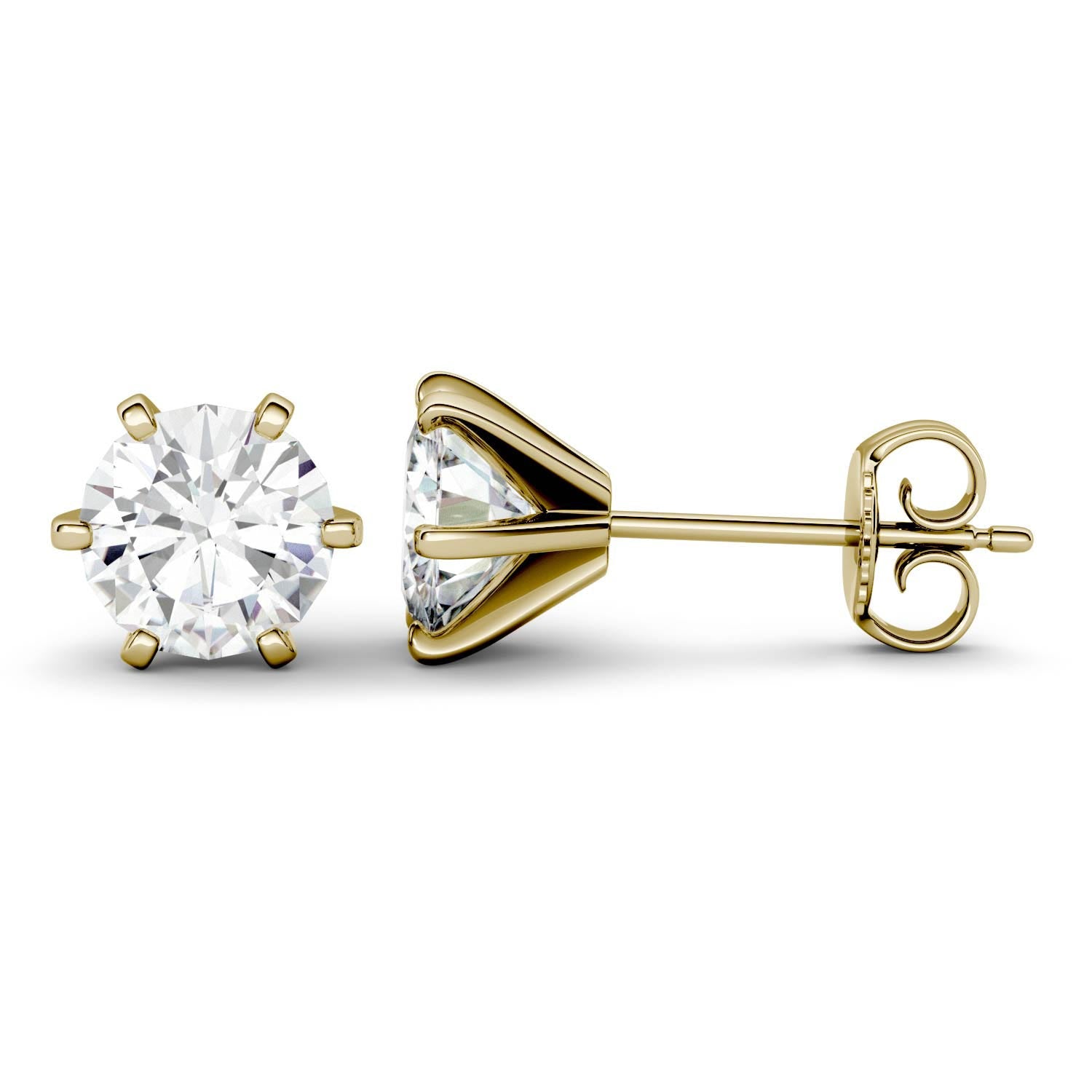 1.00 CTW DEW Round Forever One Moissanite Six Prong Stud Earrings in 14K Yellow Gold