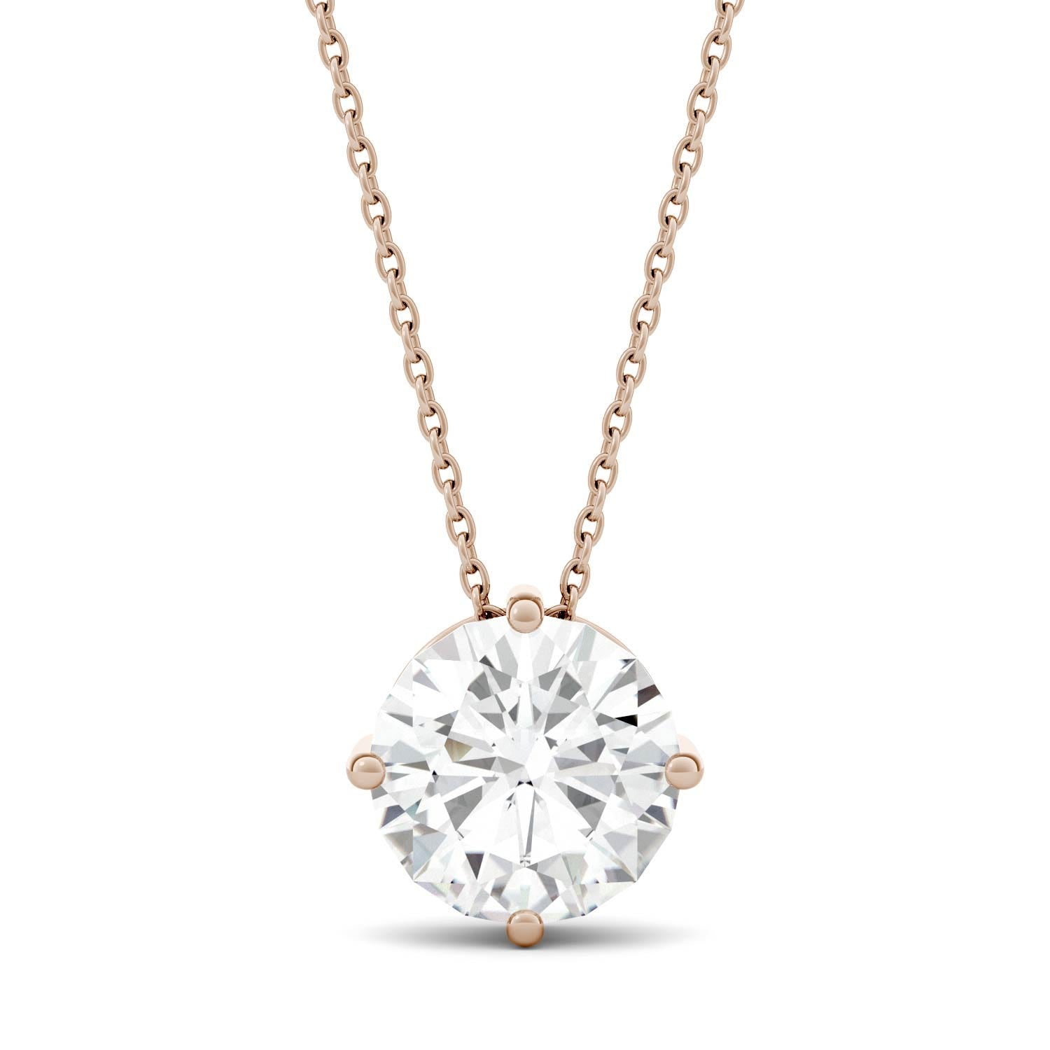 3.10 CTW DEW Round Forever One Moissanite Solitaire Stud Necklace in 14K Rose Gold