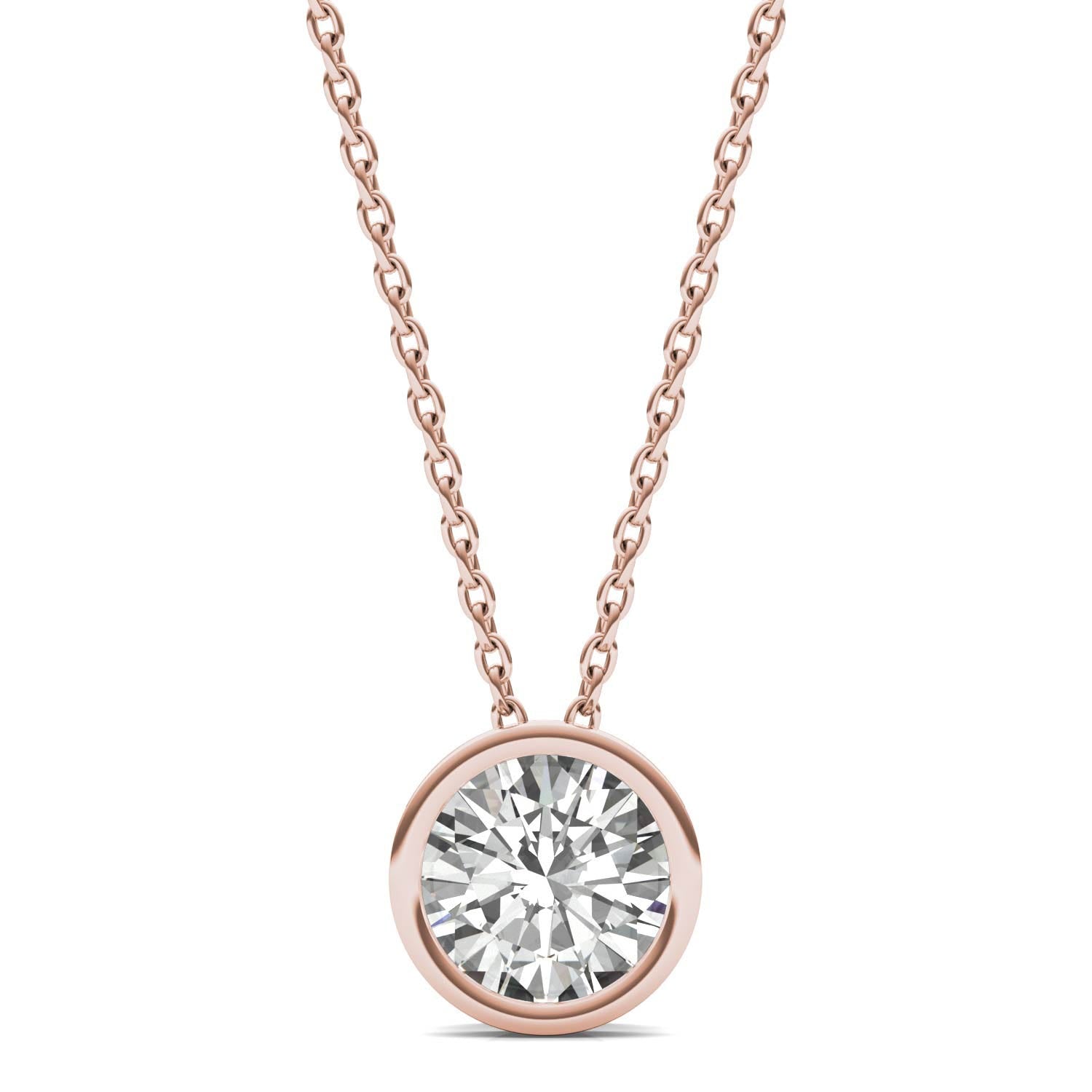 1.00 CTW DEW Round Forever One Moissanite Bezel Set Solitaire Pendant in 14K Rose Gold