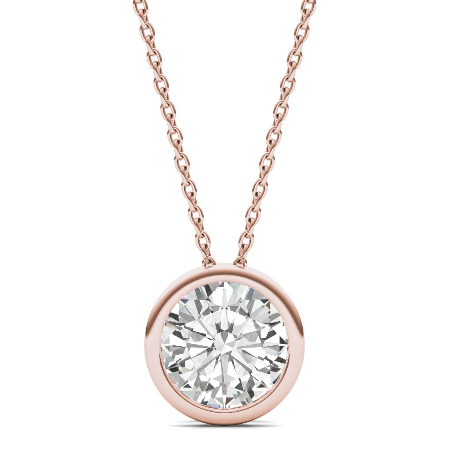 1.90 CTW DEW Round Forever One Moissanite Bezel Set Solitaire Pendant in 14K Rose Gold