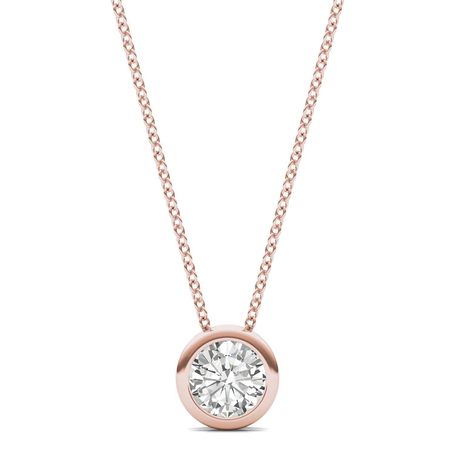 0.50 CTW DEW Round Forever One Moissanite Bezel Set Solitaire Pendant in 14K Rose Gold
