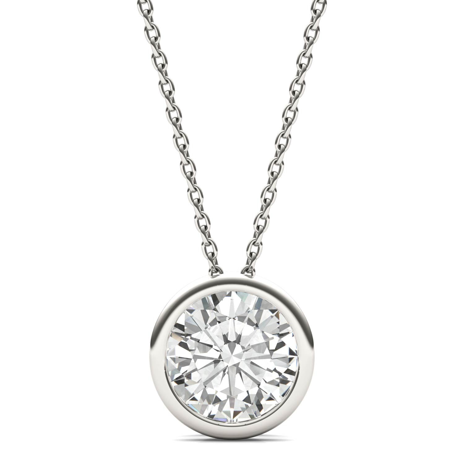 1.90 CTW DEW Round Forever One Moissanite Bezel Set Solitaire Pendant in 14K White Gold