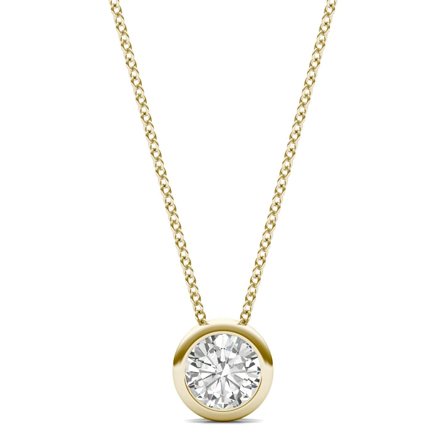 0.50 CTW DEW Round Forever One Moissanite Bezel Set Solitaire Pendant in 14K Yellow Gold