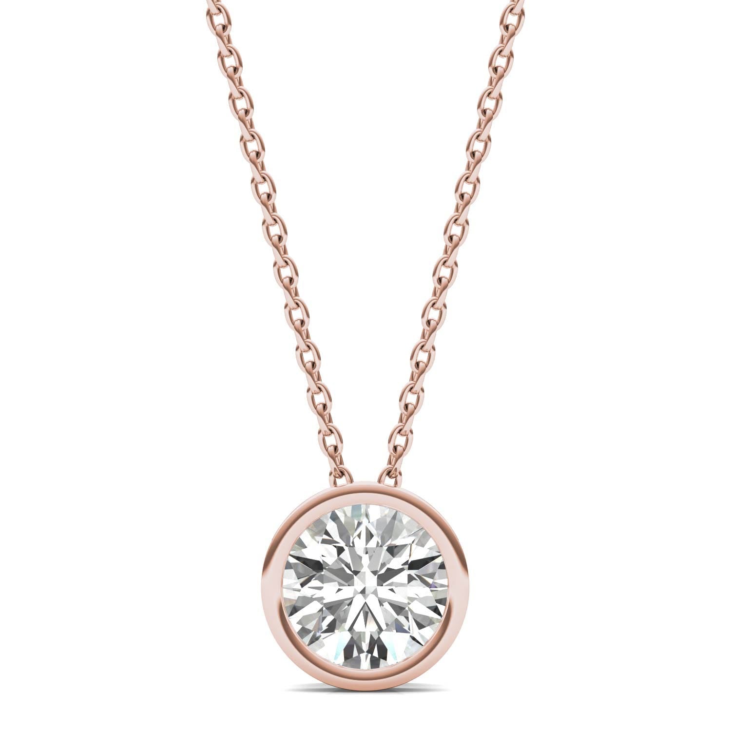 1 CTW Round Caydia Lab Grown Diamond Bezel Set Solitaire Necklace 14K Rose Gold