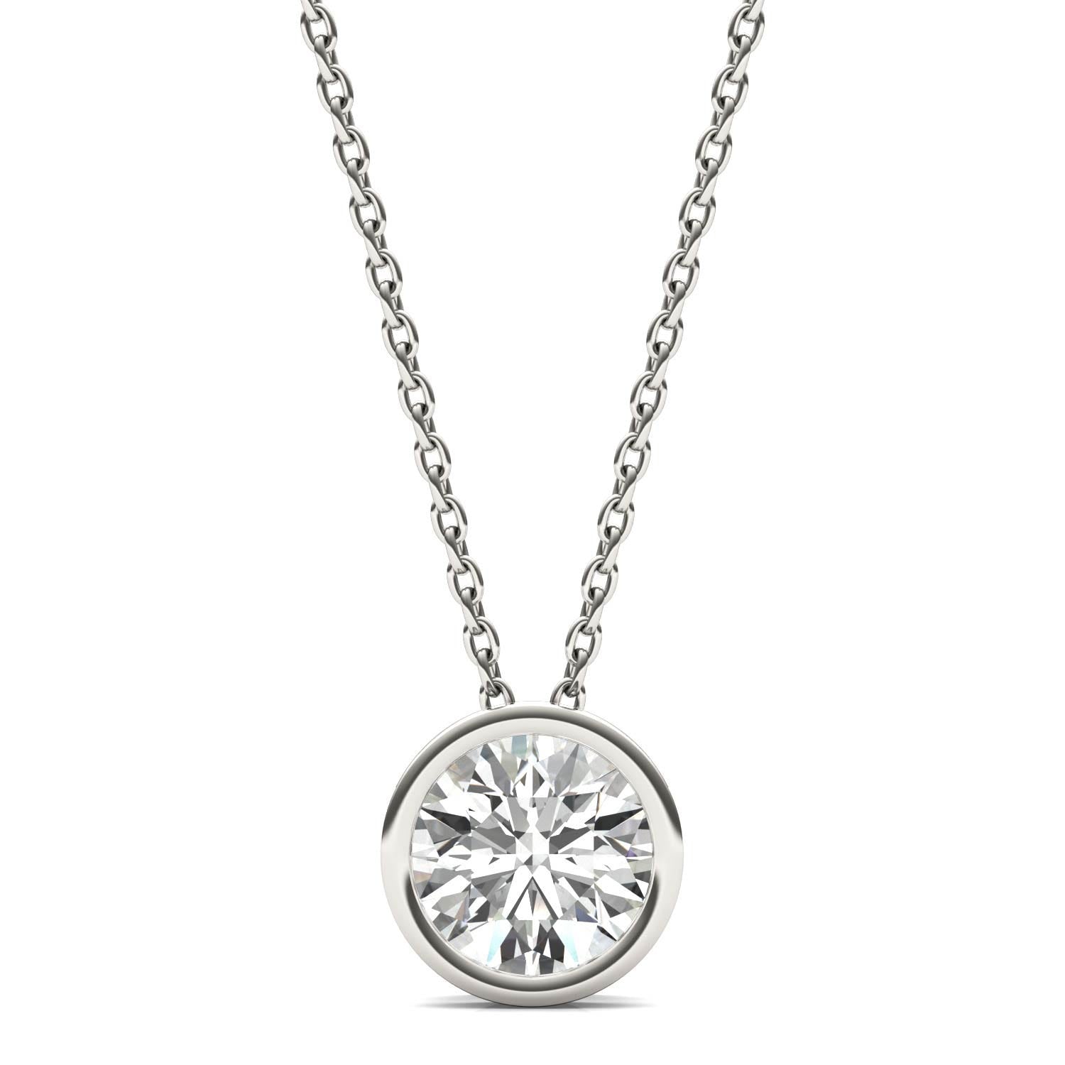 1 CTW Round Caydia Lab Grown Diamond Bezel Set Solitaire Necklace 14K White Gold