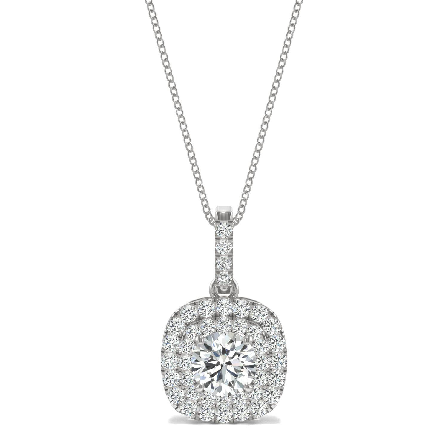 1.13 CTW DEW Round Forever One Moissanite Double Halo Necklace in 14K White Gold