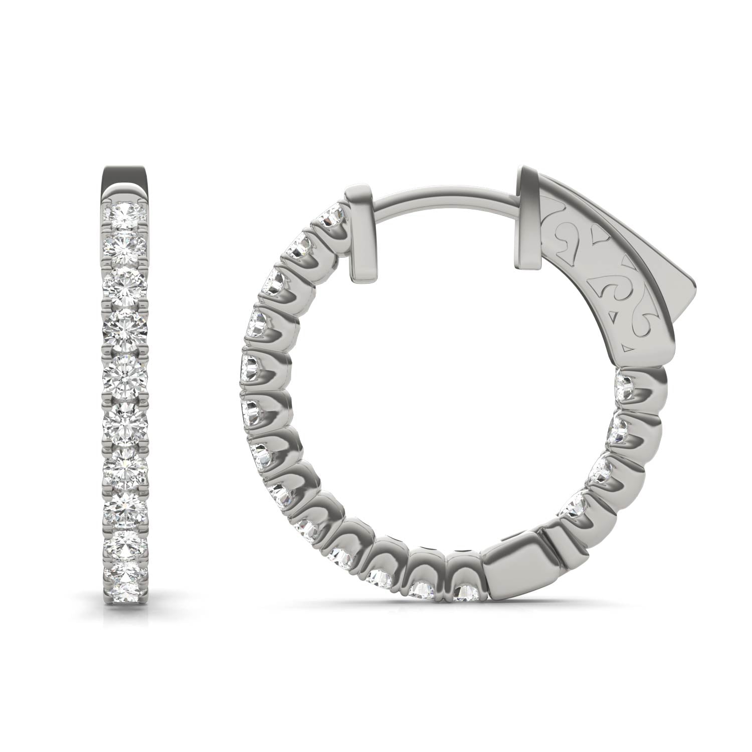 0.68 CTW DEW Round Forever One Moissanite Hoop Earrings in 14K White Gold