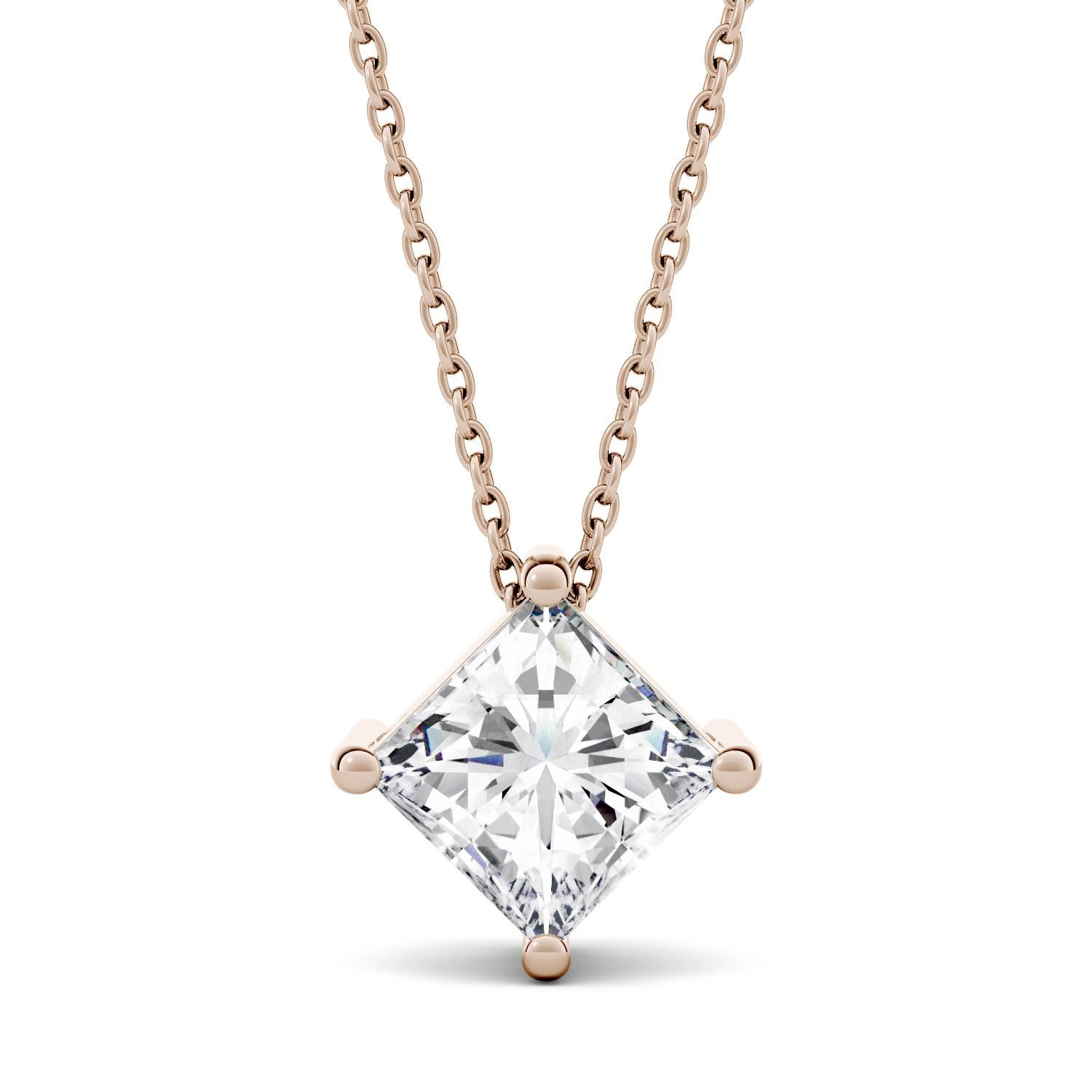 0.90 CTW DEW Princess Forever One Moissanite Solitaire Necklace in 14K Rose Gold
