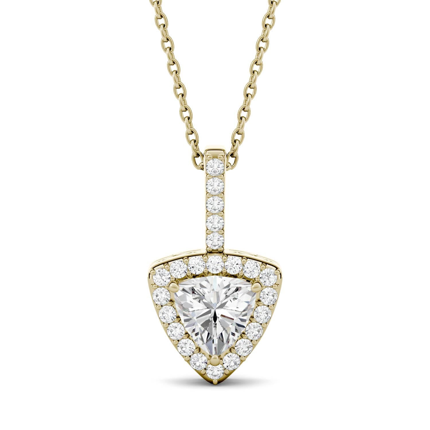 1.18 CTW DEW Trillion Forever One Moissanite Halo Pendant in 14K Yellow Gold