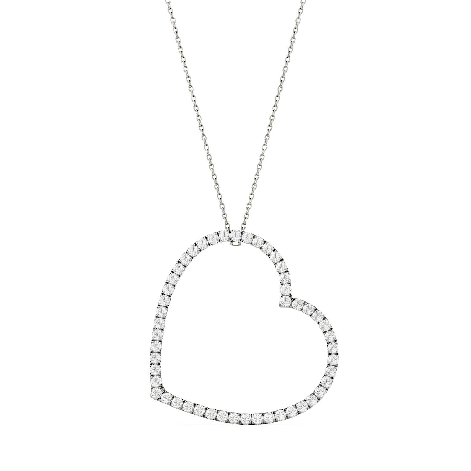1.00 CTW DEW Round Forever One Moissanite Oversized Heart Necklace in 14K White Gold