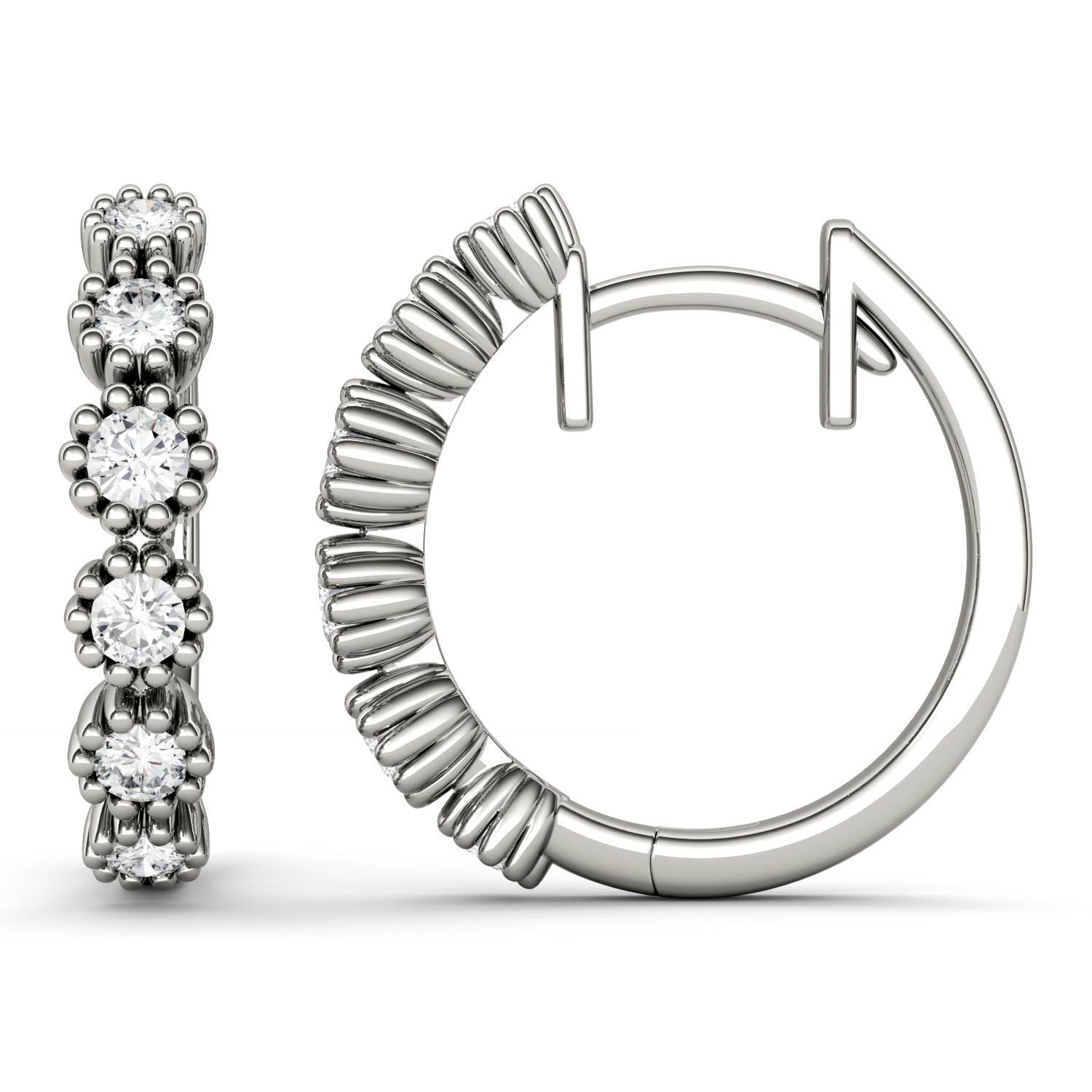 0.40 CTW DEW Round Forever One Moissanite Beaded Hoop Earrings in 14K White Gold