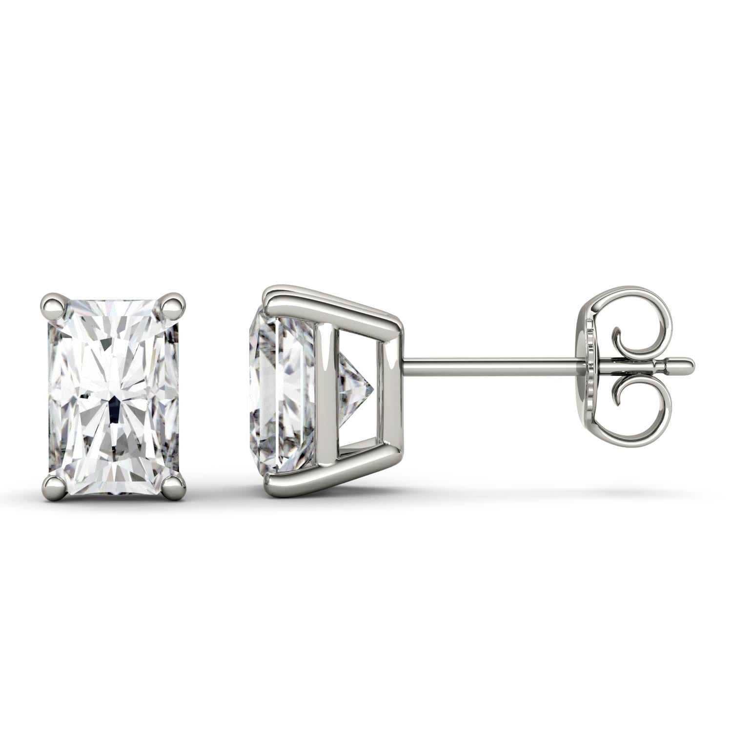 1.40 CTW DEW Radiant Forever One Moissanite Four Prong Stud Earrings in 14K White Gold