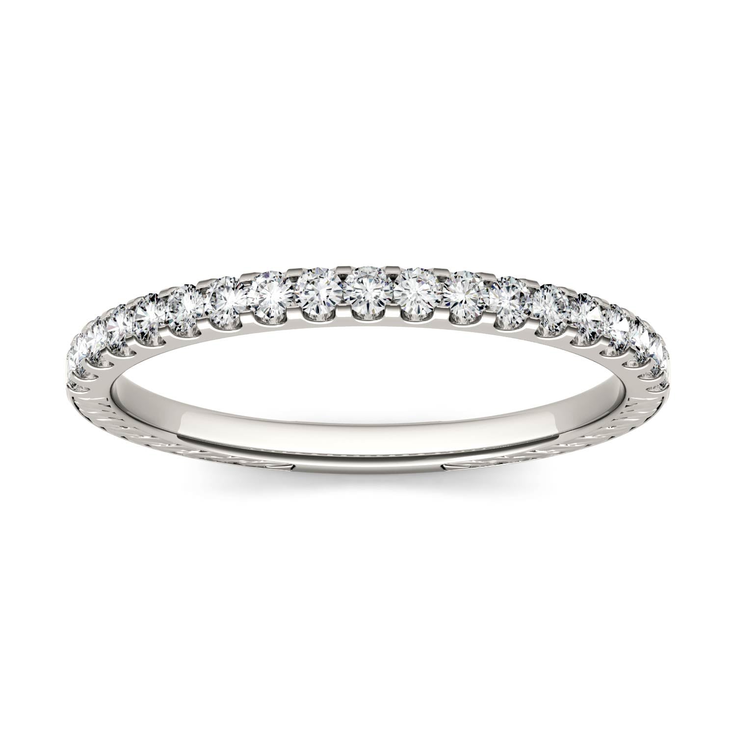 0.28 CTW DEW Round Forever One Moissanite Prong Set Band with Carved Detail Ring in 14K White Gold