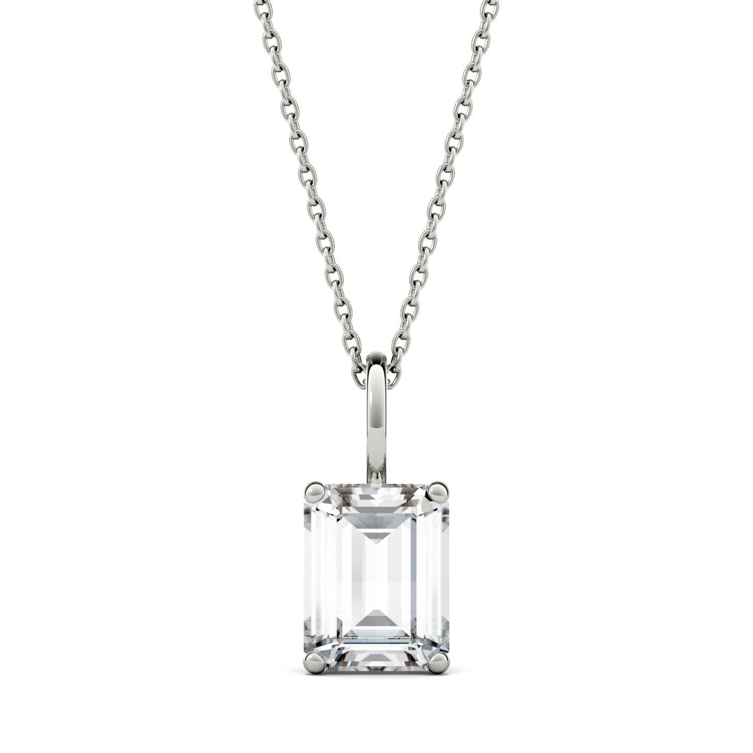 2.52 CTW DEW Emerald Forever One Moissanite Four Prong Solitaire Pendant in 14K White Gold