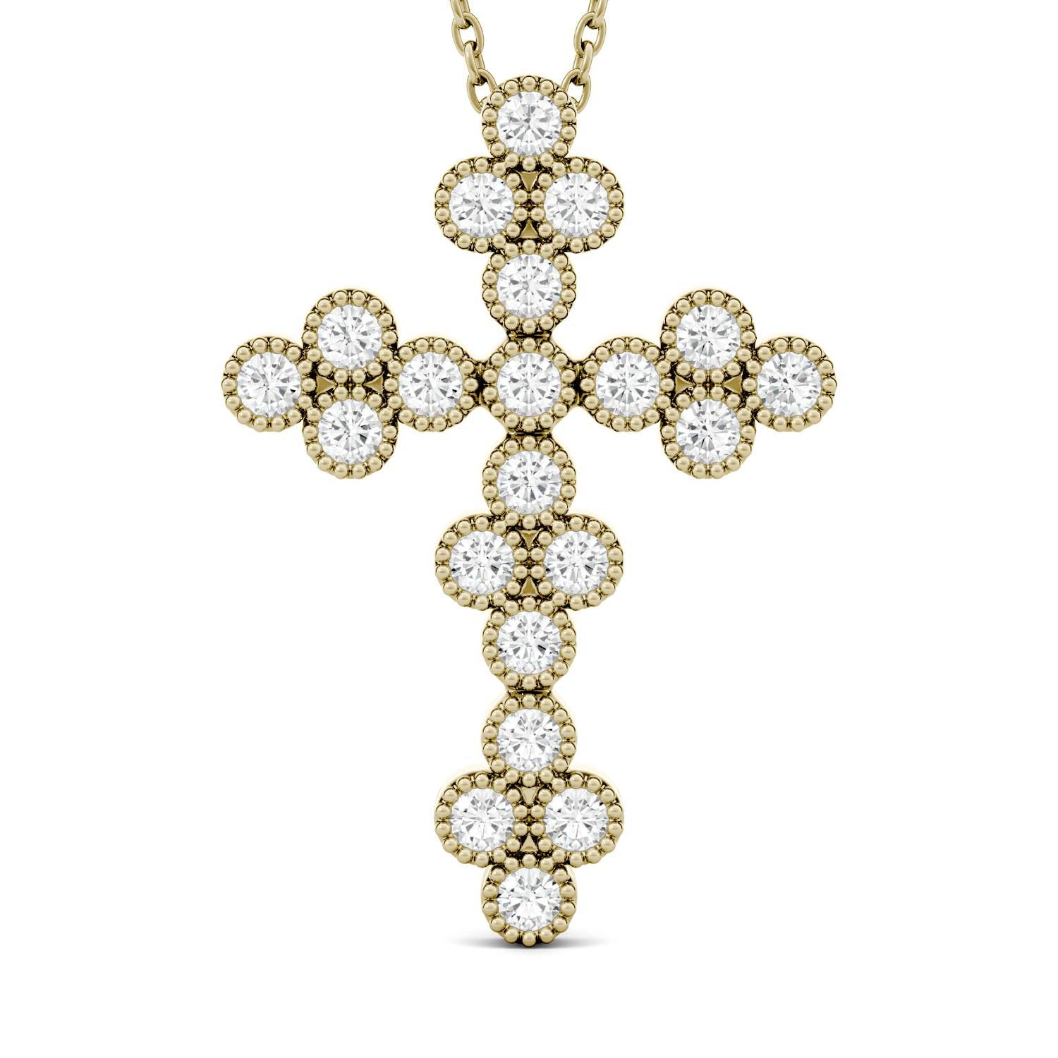 0.47 CTW DEW Round Forever One Moissanite Milgrain Cross Pendant in 14K Yellow Gold