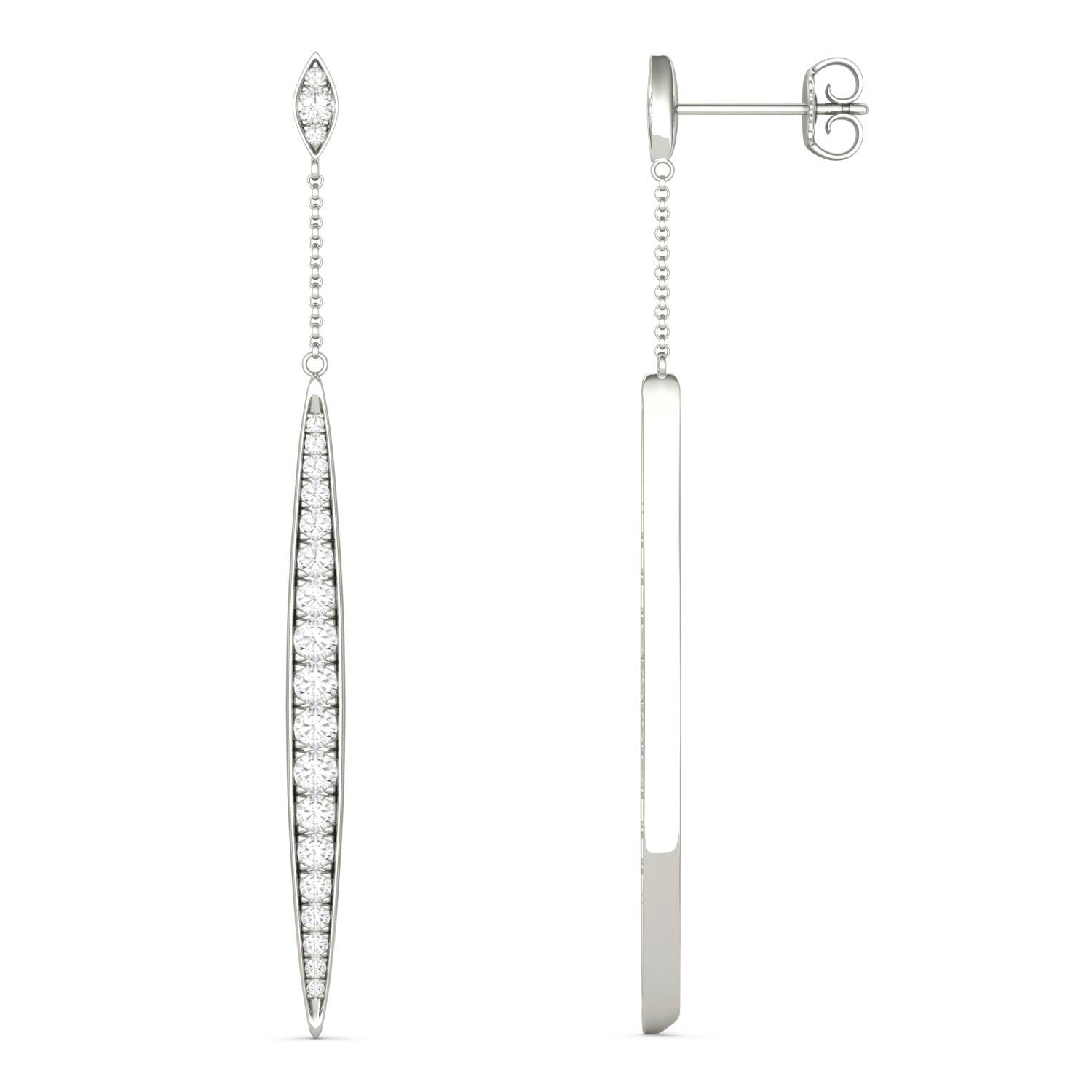 1.02 CTW DEW Round Forever One Moissanite Dangle Drop Earrings in 14K White Gold