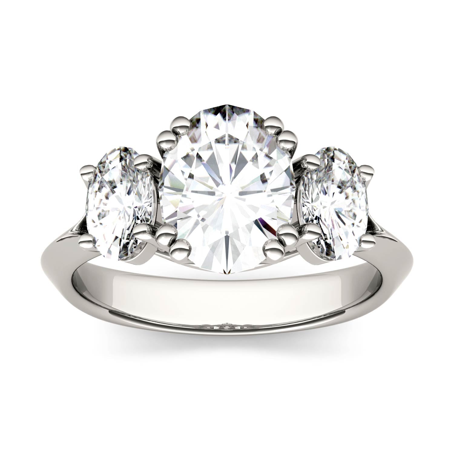 3.10 CTW DEW Oval Forever One Moissanite Three Stone Engagement Ring in 14K White Gold