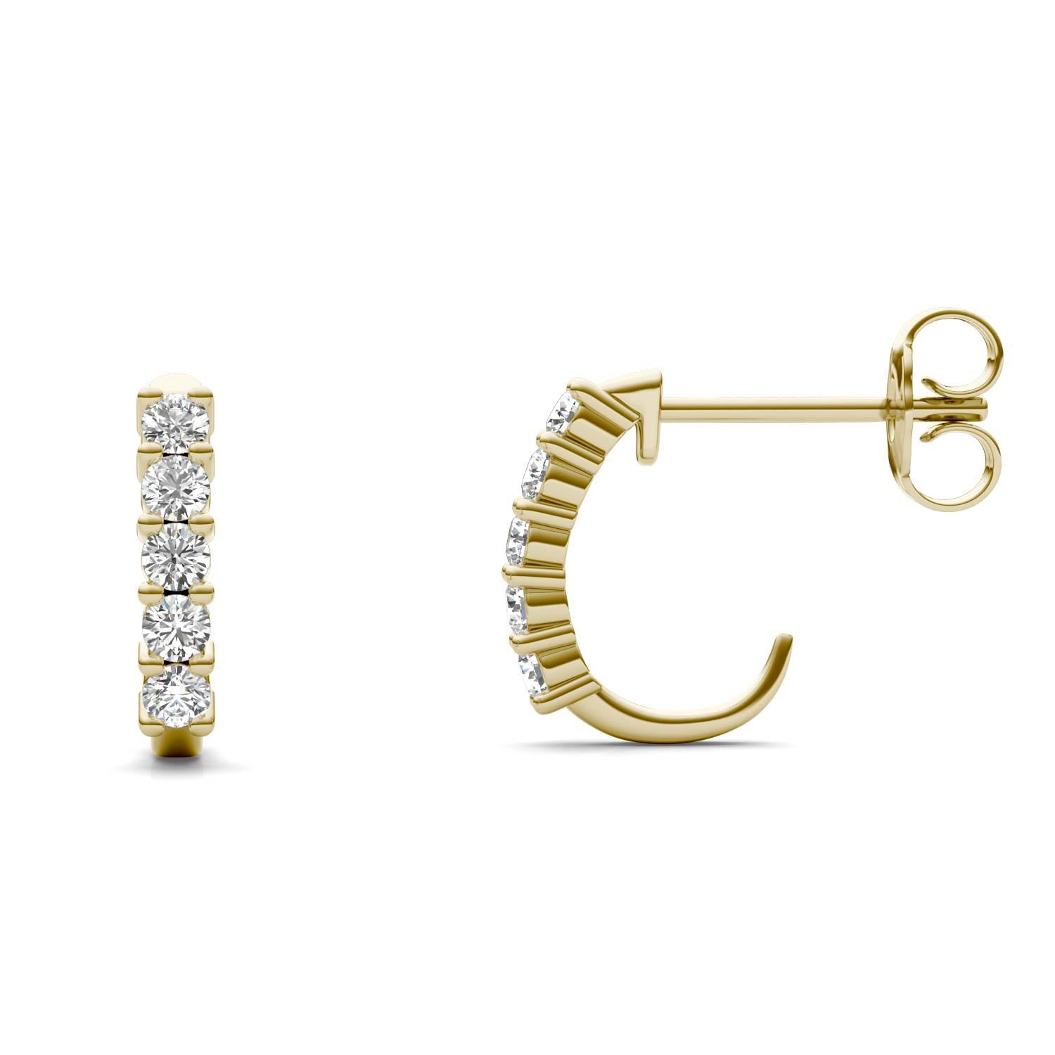 1/3 CTW Round Caydia Lab Grown Diamond Shared Prong J-Hoop Earrings 14K Yellow Gold