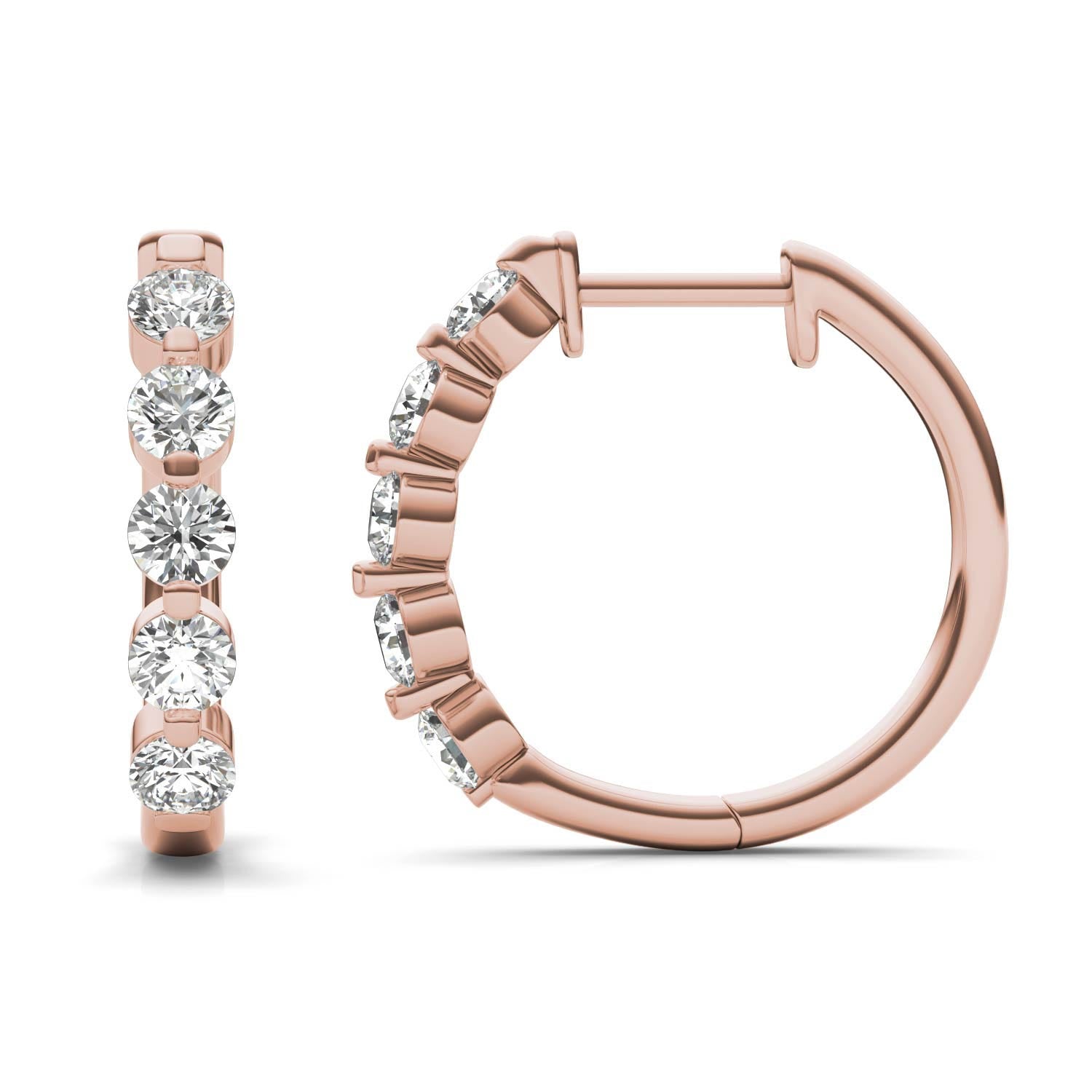 1 CTW Round Caydia Lab Grown Diamond Shared Prong Hoop Earrings 14K Rose Gold