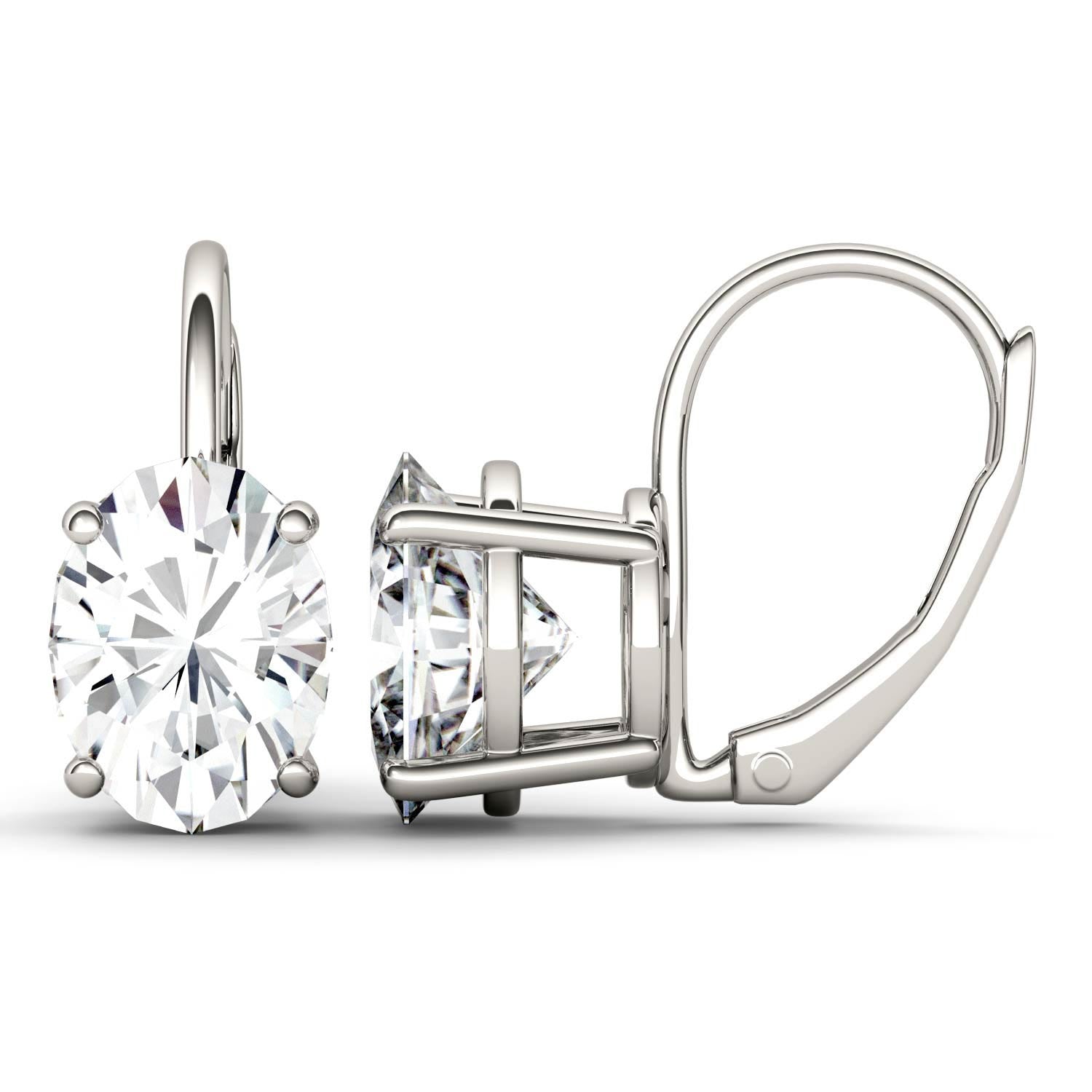 4.20 CTW DEW Oval Forever One Moissanite Leverback Earrings in 14K White Gold