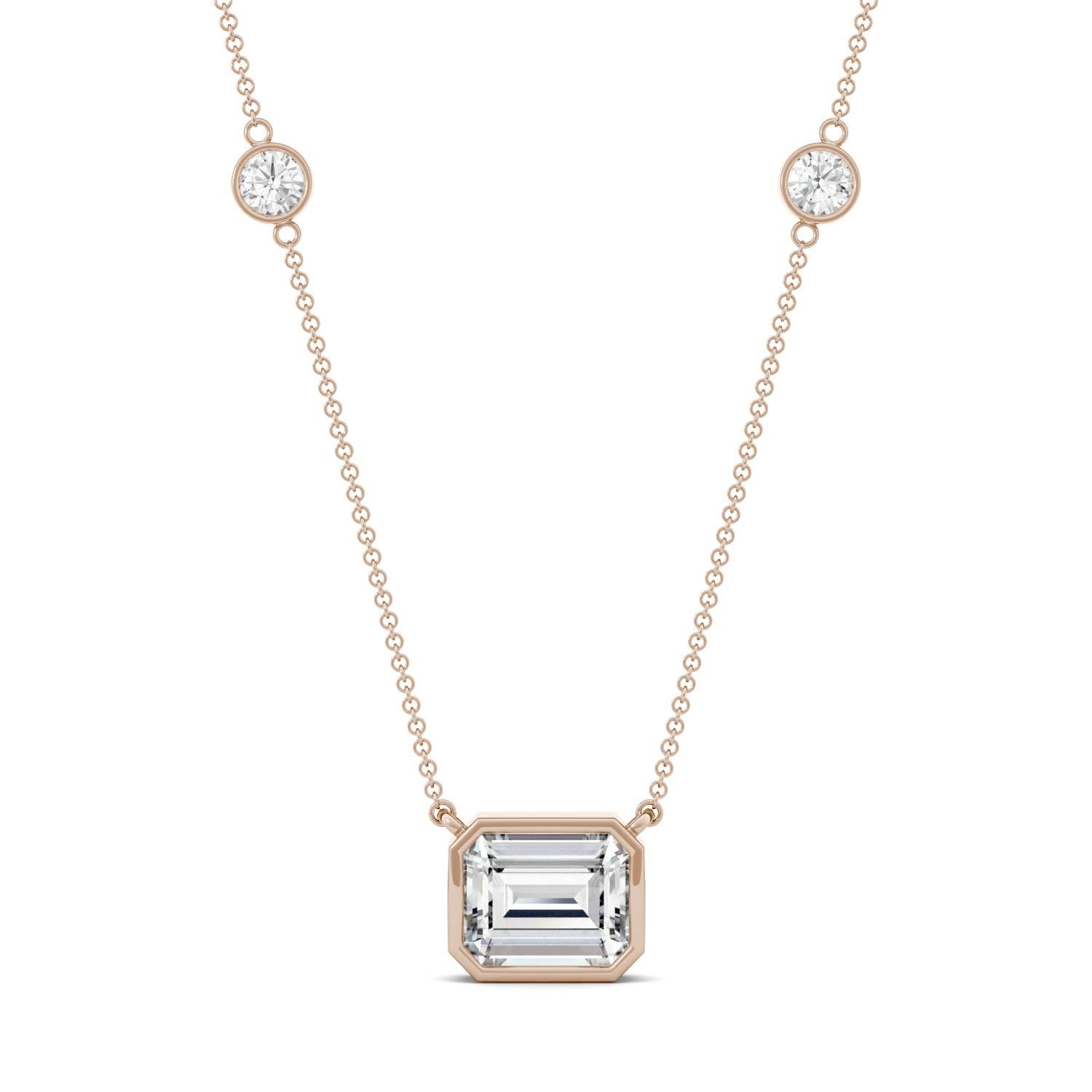 4.01 CTW DEW Emerald Forever One Moissanite East-West Solitaire with Side Accents Necklace in 14K Rose Gold