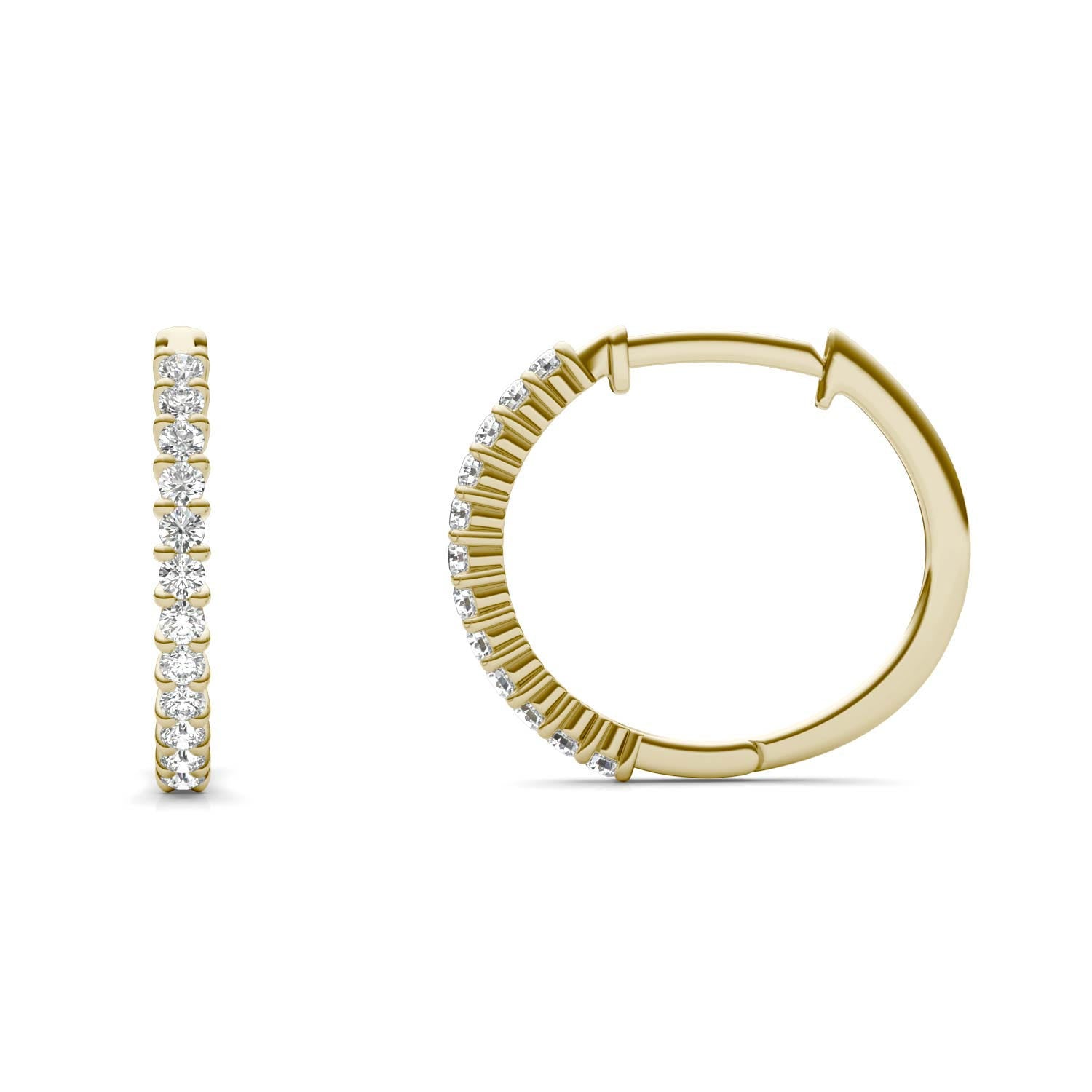 1/4 CTW Round Caydia Lab Grown Diamond Shared Prong Hoop Earrings 14K Yellow Gold