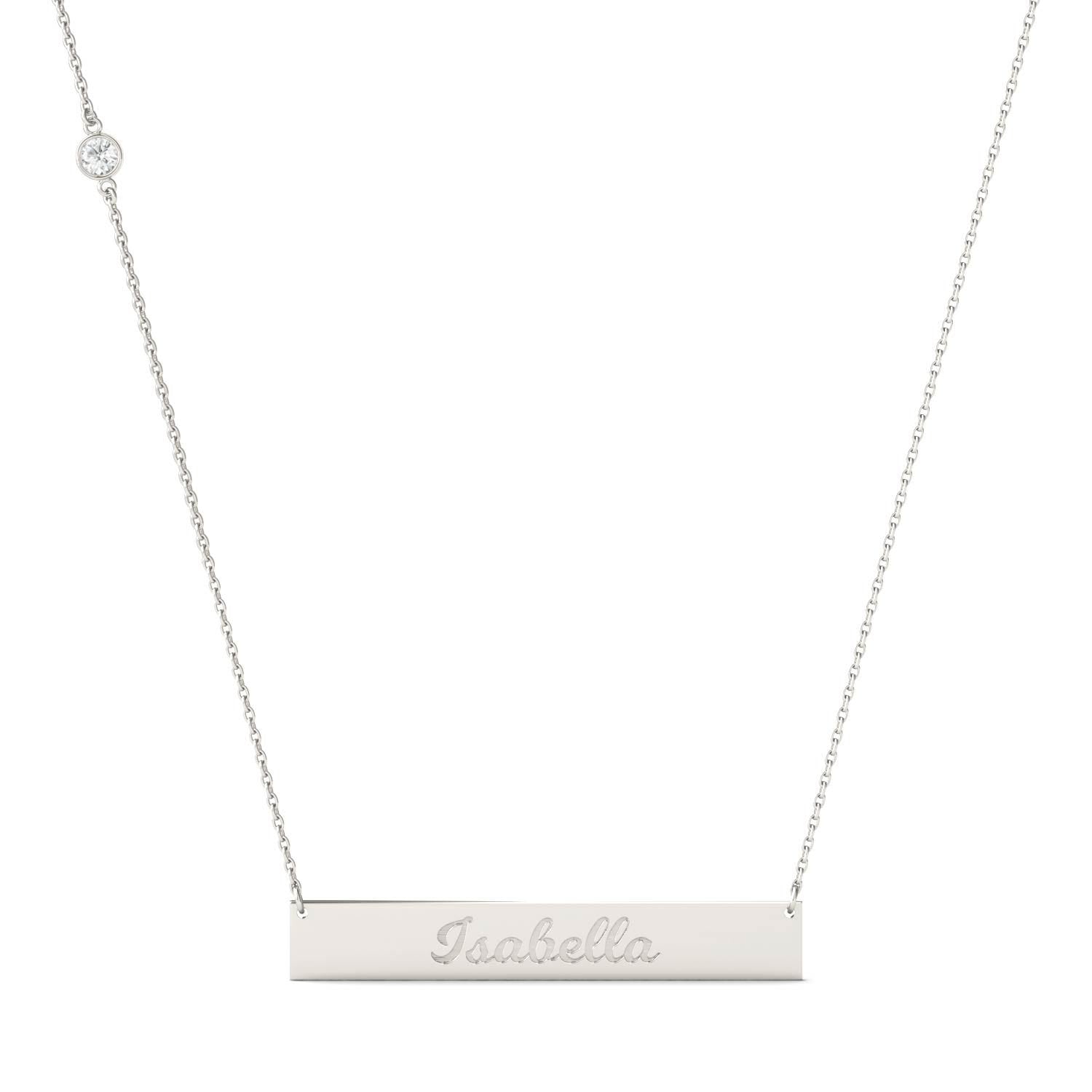 Personalized Script Name Bar Necklace in Sterling Silver with Forever One Moissanite Accent